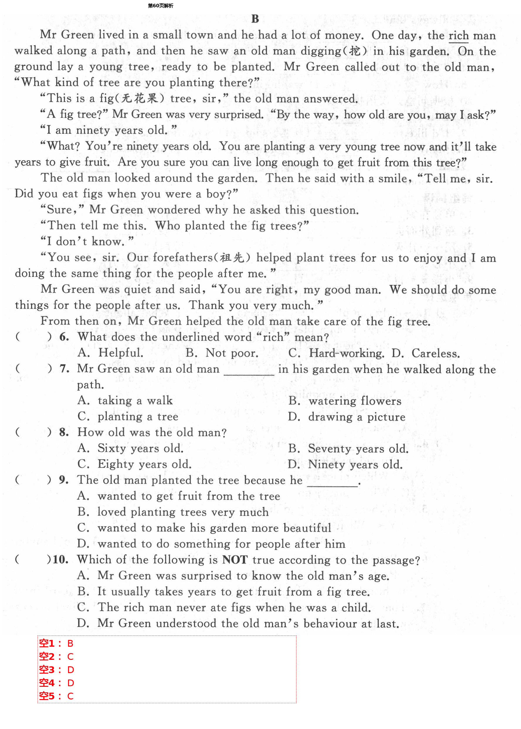 注:目前有些书本章节名称可能整理的还不是很完善,但都是按照顺序排列的,请同学们按照顺序仔细查找。练习册 2021年绿色成长互动空间配套练习七年级英语下册译林版 答案主要是用来给同学们做完题方便对答案用的,请勿直接抄袭。