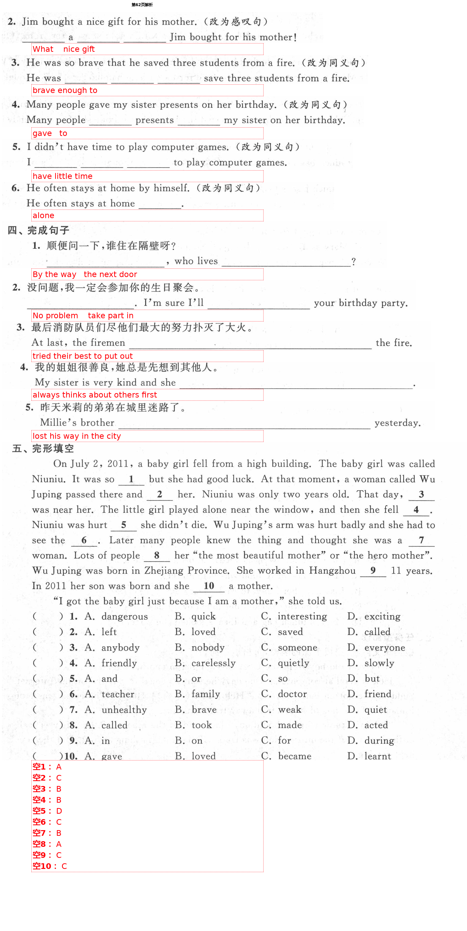 注:目前有些书本章节名称可能整理的还不是很完善,但都是按照顺序排列的,请同学们按照顺序仔细查找。练习册 2021年绿色成长互动空间配套练习七年级英语下册译林版 答案主要是用来给同学们做完题方便对答案用的,请勿直接抄袭。