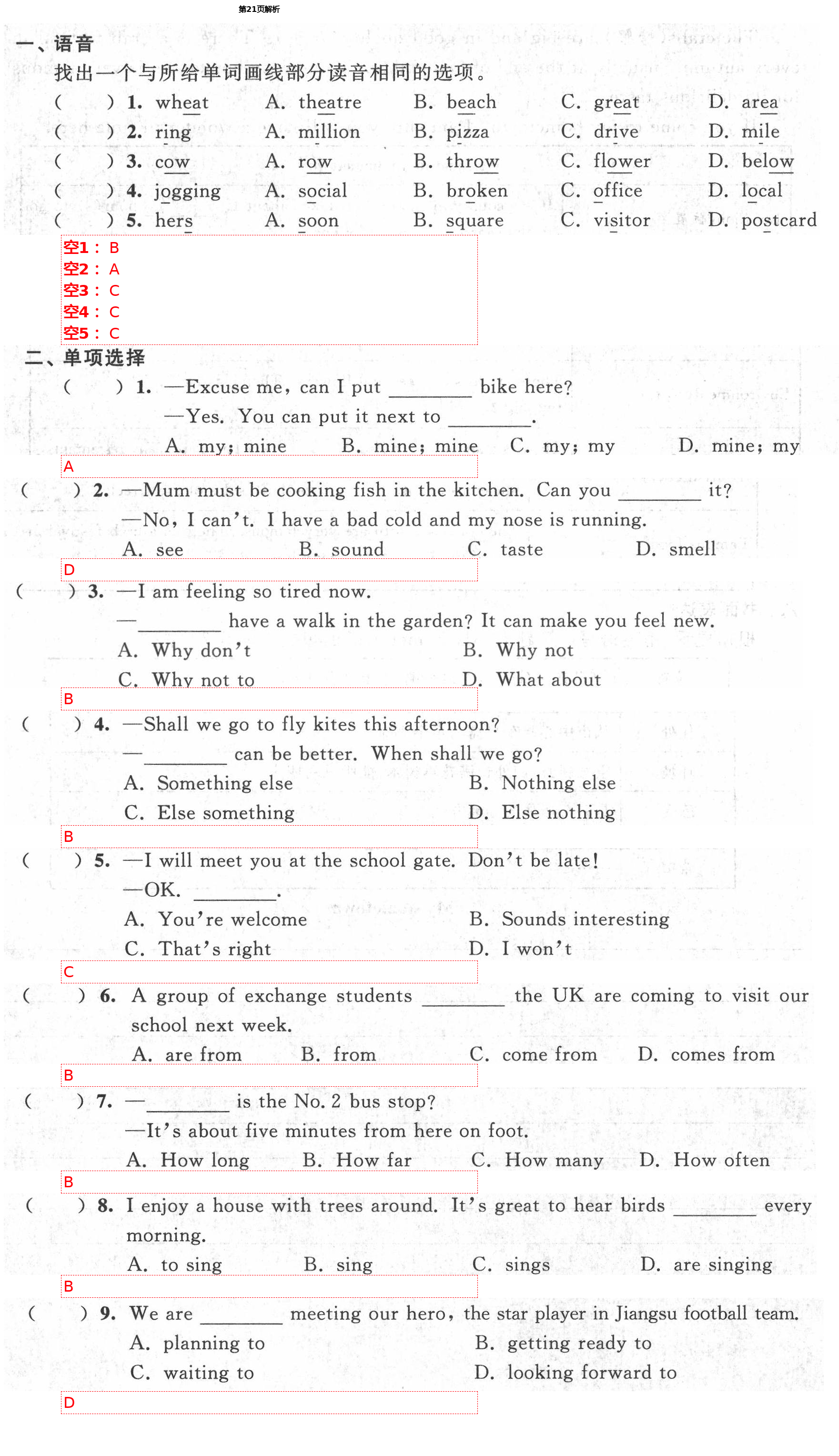 注:目前有些书本章节名称可能整理的还不是很完善,但都是按照顺序排列的,请同学们按照顺序仔细查找。练习册 2021年绿色成长互动空间配套练习七年级英语下册译林版 答案主要是用来给同学们做完题方便对答案用的,请勿直接抄袭。