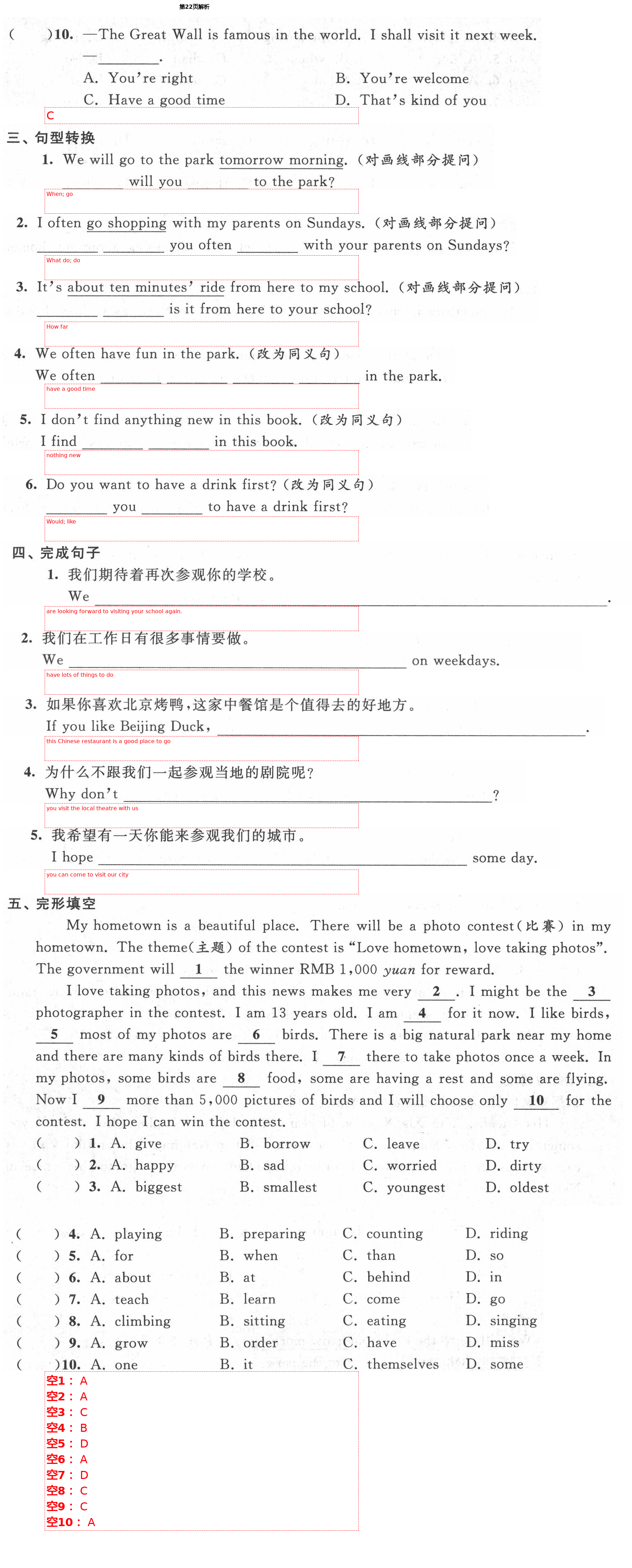注:目前有些书本章节名称可能整理的还不是很完善,但都是按照顺序排列的,请同学们按照顺序仔细查找。练习册 2021年绿色成长互动空间配套练习七年级英语下册译林版 答案主要是用来给同学们做完题方便对答案用的,请勿直接抄袭。