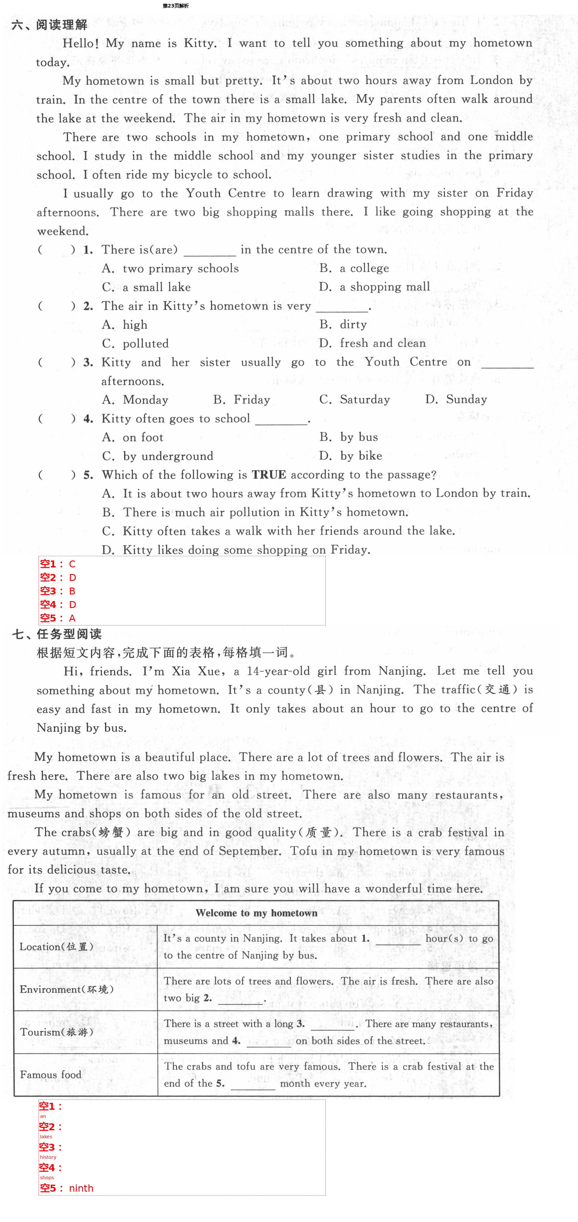 注:目前有些书本章节名称可能整理的还不是很完善,但都是按照顺序排列的,请同学们按照顺序仔细查找。练习册 2021年绿色成长互动空间配套练习七年级英语下册译林版 答案主要是用来给同学们做完题方便对答案用的,请勿直接抄袭。