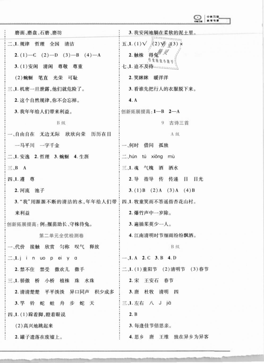 注:目前有些书本章节名称可能整理的还不是很完善,但都是按照顺序排列的,请同学们按照顺序仔细查找。练习册 2021年全优备考二年级语文下册人教版河北专版 答案主要是用来给同学们做完题方便对答案用的,请勿直接抄袭。