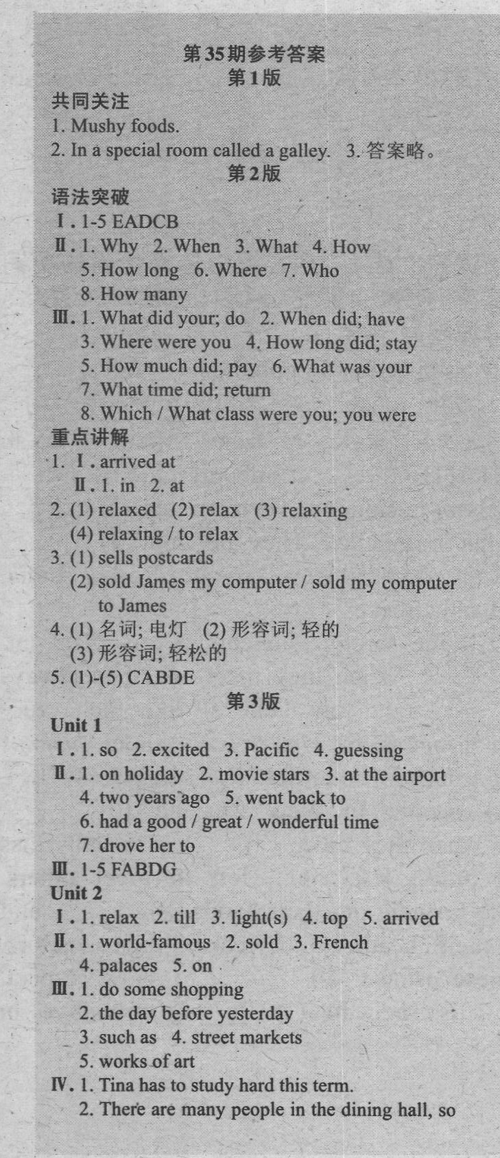 注:目前有些书本章节名称可能整理的还不是很完善,但都是按照顺序排列的,请同学们按照顺序仔细查找。练习册 2021年英语周报七年级外研版 答案主要是用来给同学们做完题方便对答案用的,请勿直接抄袭。