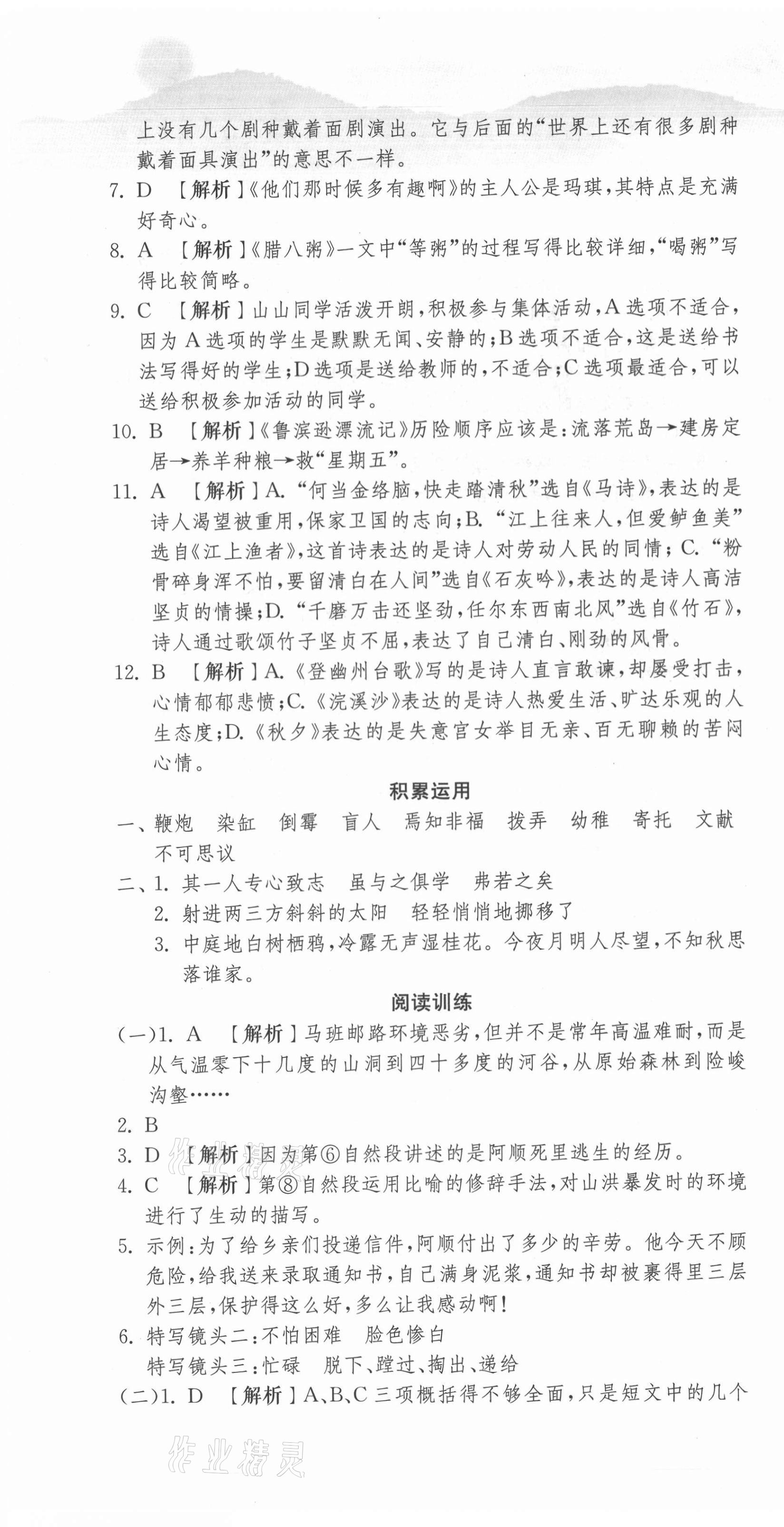注:目前有些书本章节名称可能整理的还不是很完善,但都是按照顺序排列的,请同学们按照顺序仔细查找。练习册 2021年期末闯关各地期末试卷精选六年级语文下册人教版浙江专版 答案主要是用来给同学们做完题方便对答案用的,请勿直接抄袭。