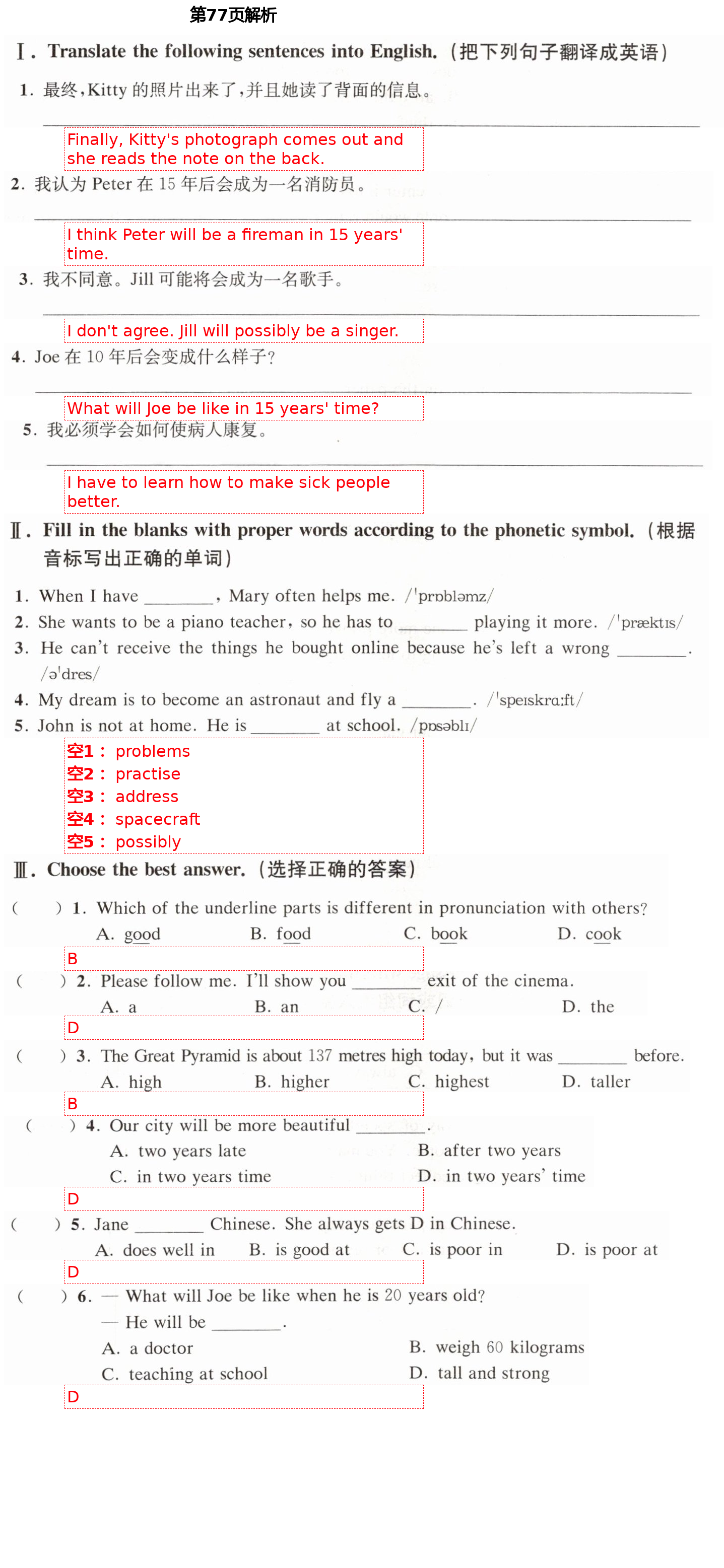 注:目前有些书本章节名称可能整理的还不是很完善,但都是按照顺序排列的,请同学们按照顺序仔细查找。练习册 2021年全优课堂六年级英语第二学期沪教版54制 答案主要是用来给同学们做完题方便对答案用的,请勿直接抄袭。