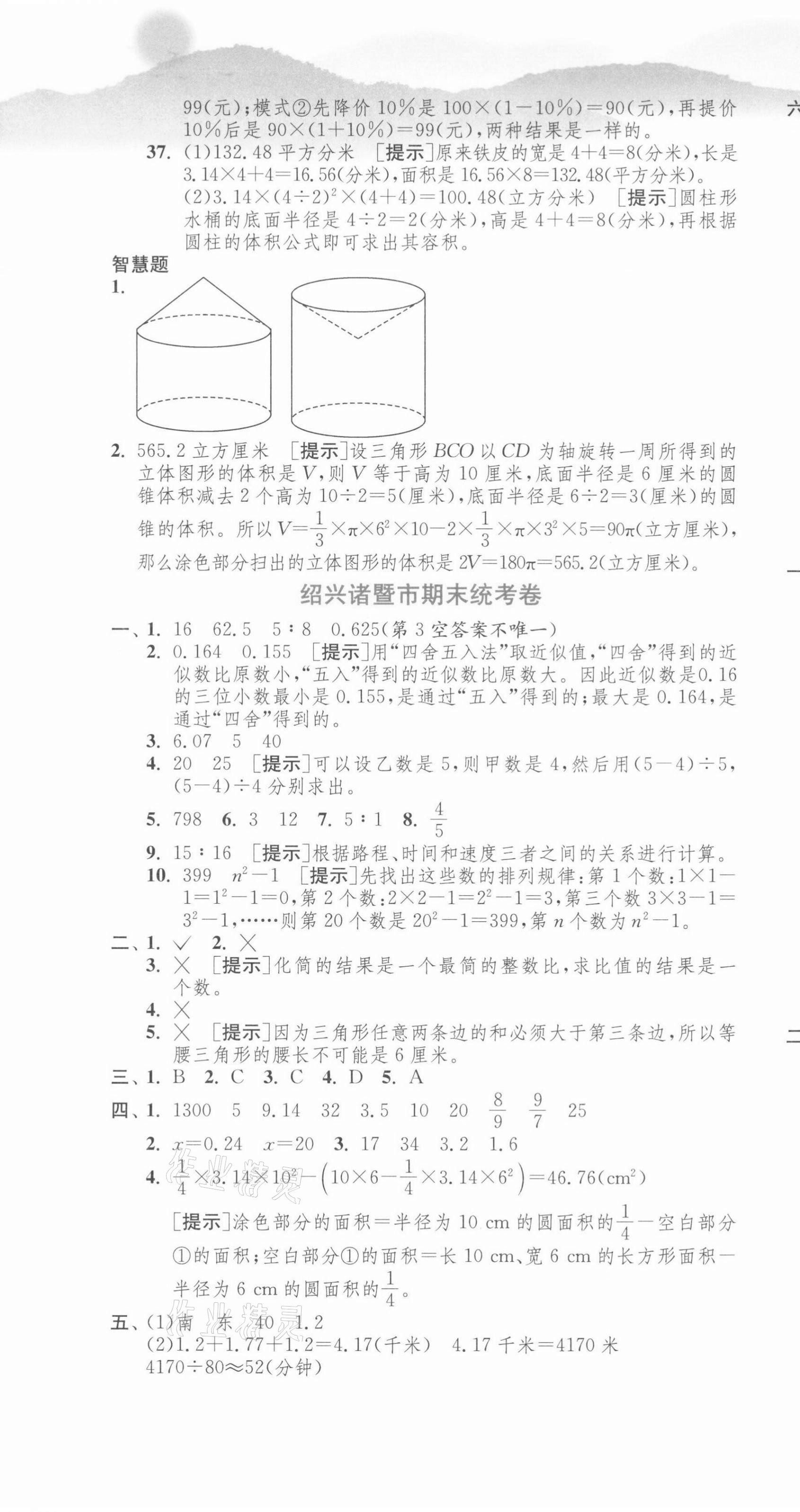 注:目前有些书本章节名称可能整理的还不是很完善,但都是按照顺序排列的,请同学们按照顺序仔细查找。练习册 2021年期末闯关各地期末试卷精选六年级数学下册人教版浙江专版 答案主要是用来给同学们做完题方便对答案用的,请勿直接抄袭。