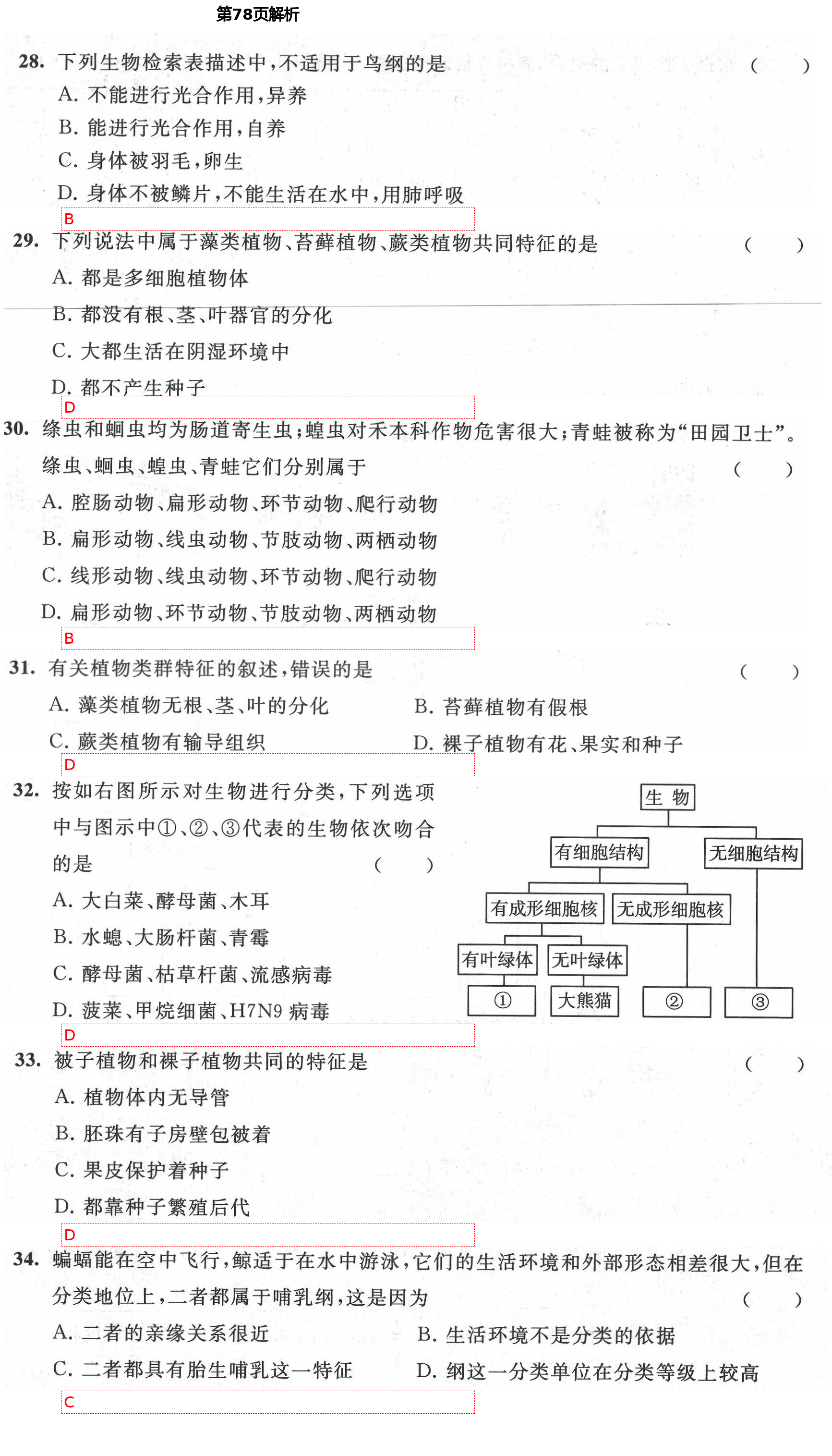 注:目前有些书本章节名称可能整理的还不是很完善,但都是按照顺序排列的,请同学们按照顺序仔细查找。练习册 2021年阳光互动绿色成长空间七年级生物下册苏科版提优版 答案主要是用来给同学们做完题方便对答案用的,请勿直接抄袭。