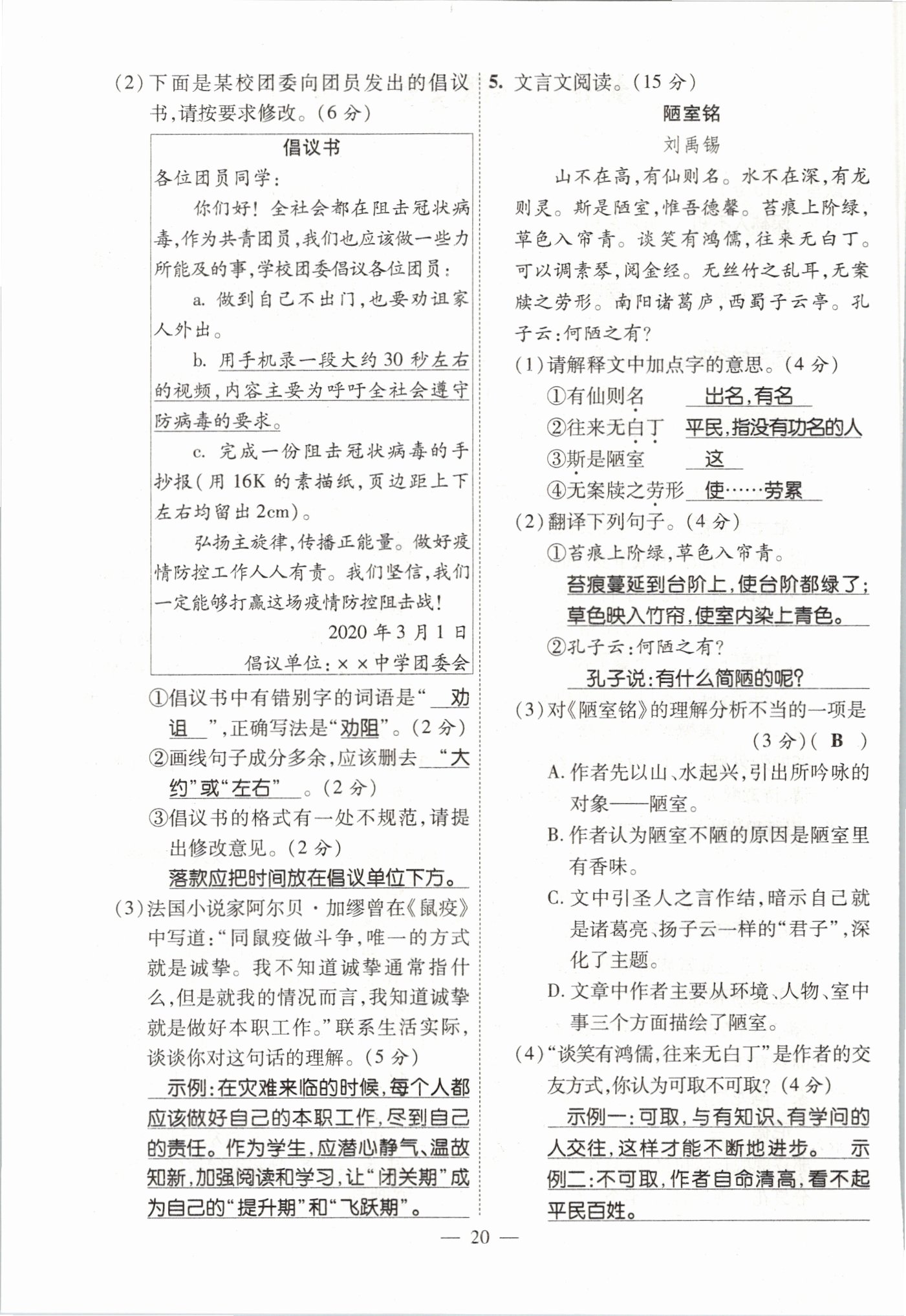 2021年期末必刷题学练优计划七年级语文下册人教版