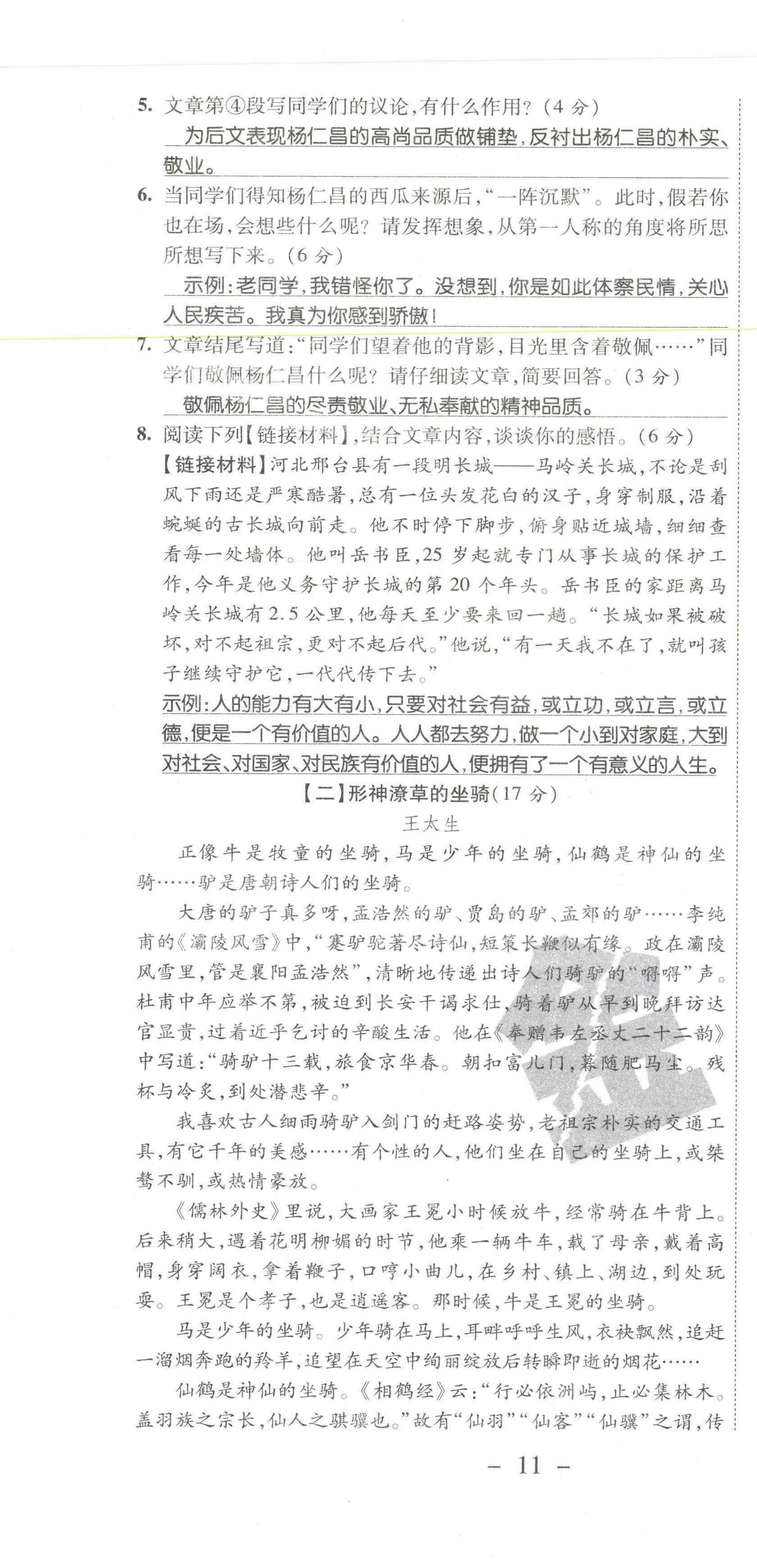2021年期末必刷题学练优计划七年级语文下册人教版