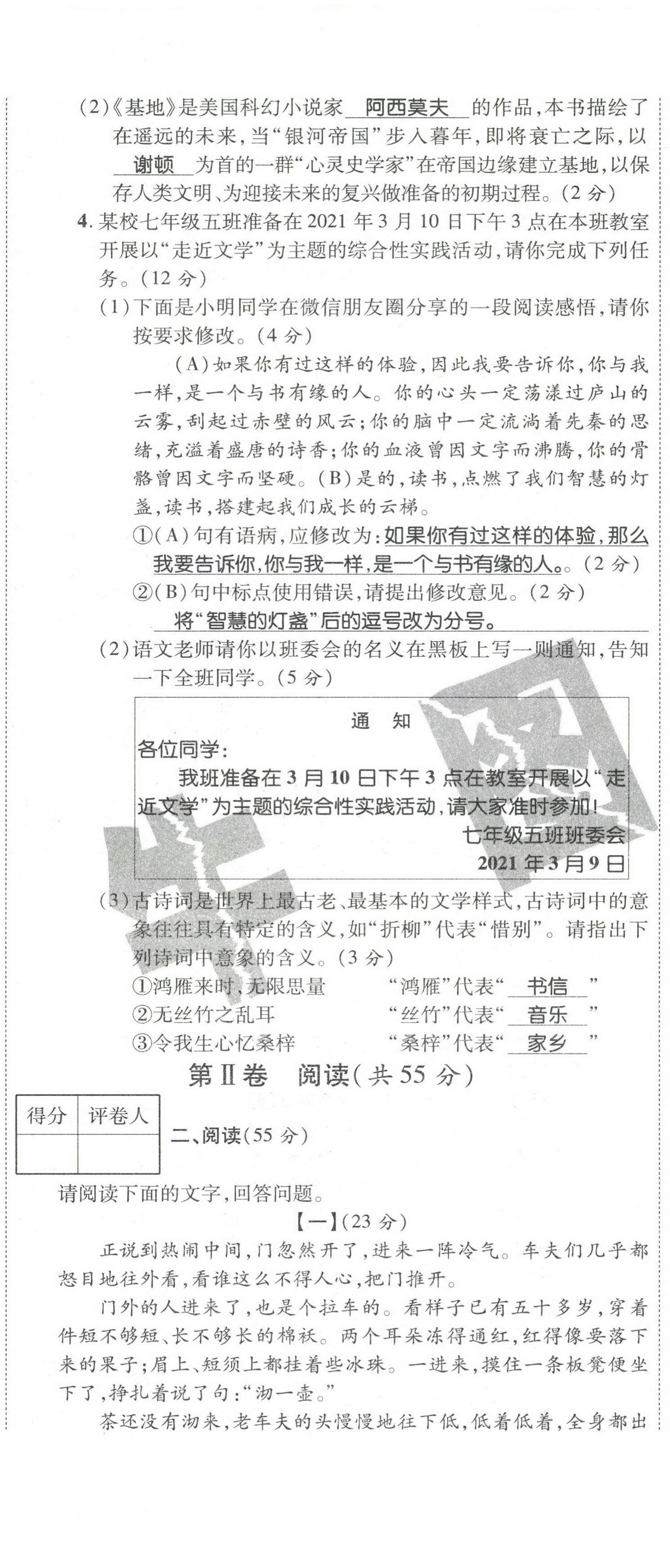 2021年期末必刷题学练优计划七年级语文下册人教版