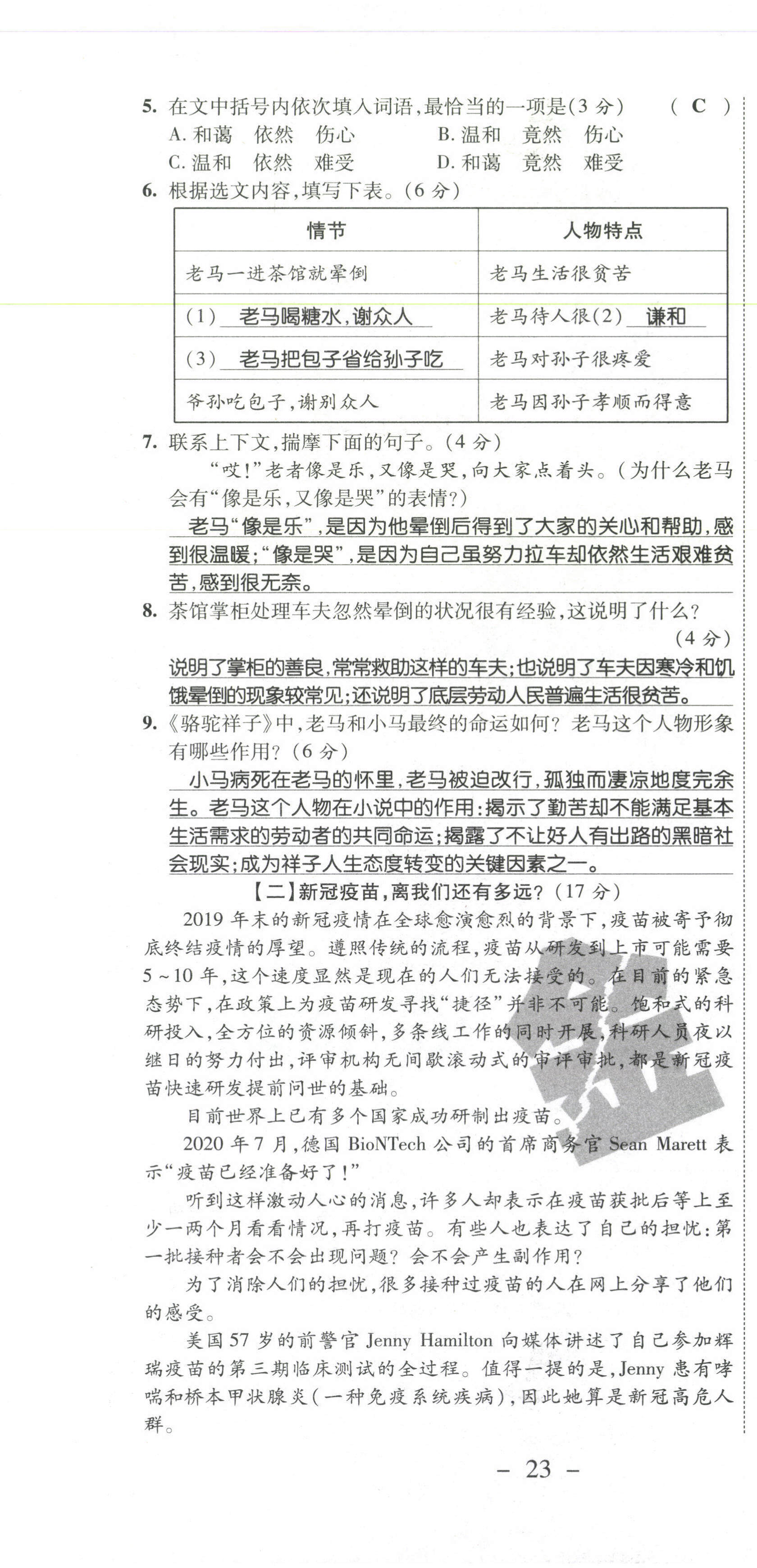 注:目前有些书本章节名称可能整理的还不是很完善,但都是按照顺序排列的,请同学们按照顺序仔细查找。练习册 2021年期末必刷题学练优计划七年级语文下册人教版 答案主要是用来给同学们做完题方便对答案用的,请勿直接抄袭。