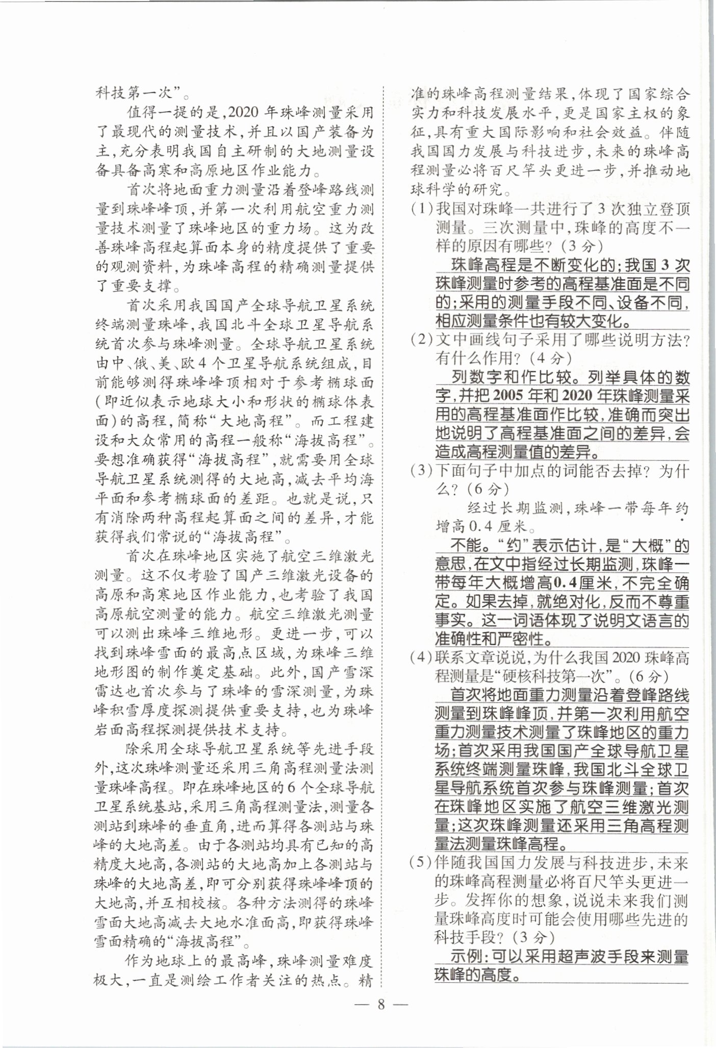 2021年期末必刷题学练优计划八年级语文下册人教版