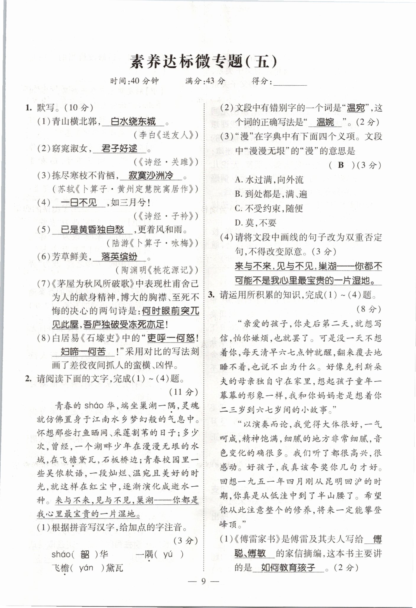 2021年期末必刷题学练优计划八年级语文下册人教版