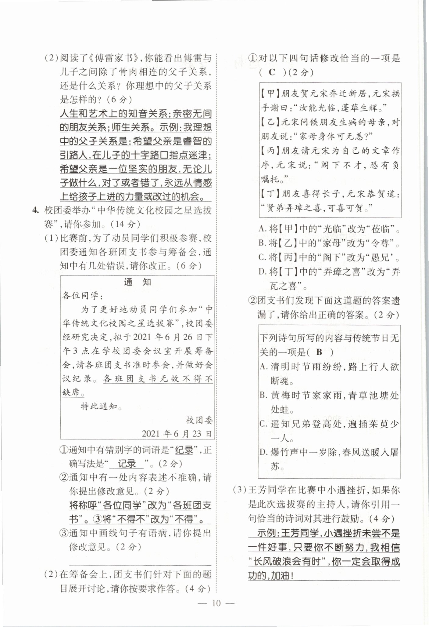 2021年期末必刷题学练优计划八年级语文下册人教版