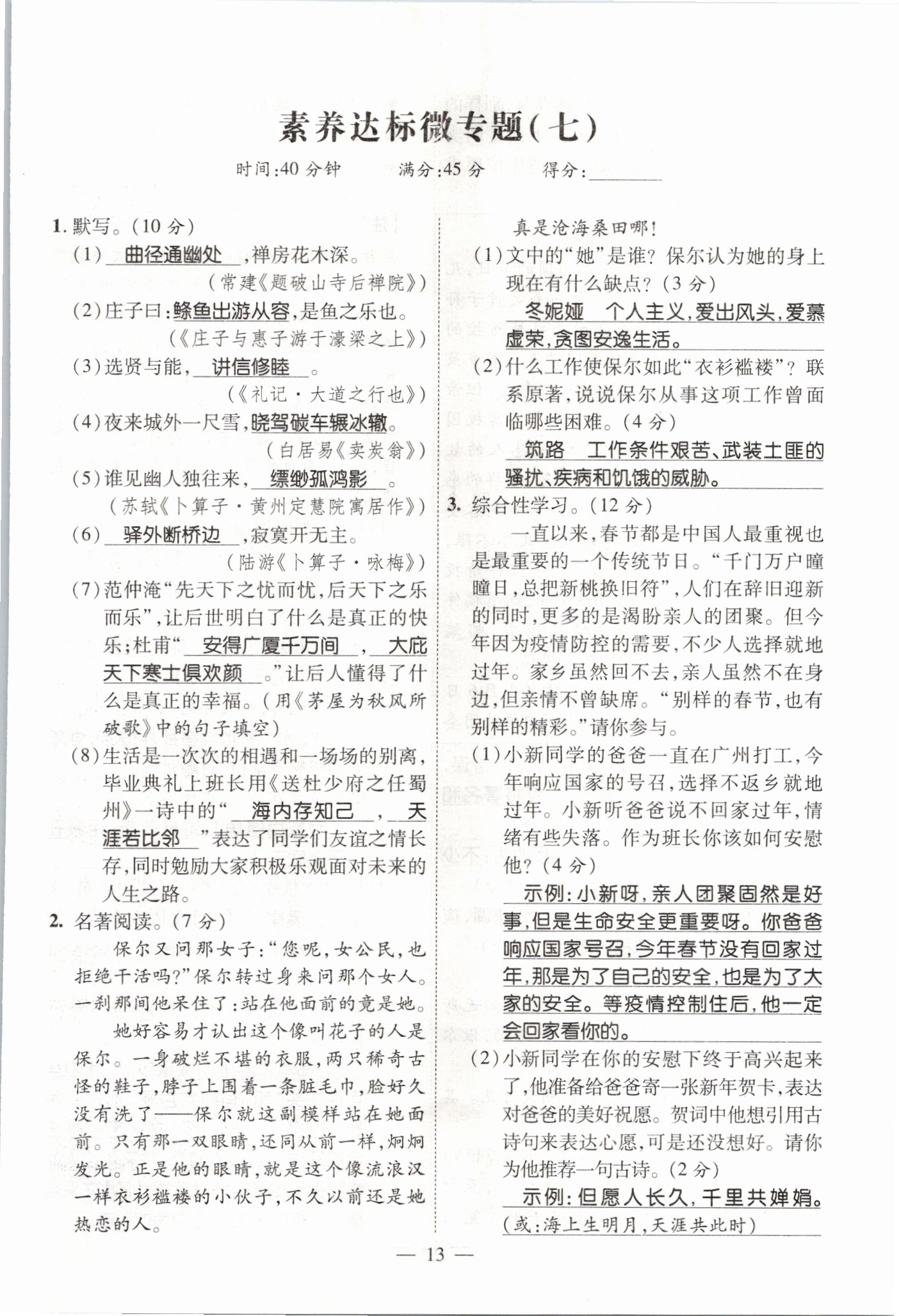 - 参考答案第13页