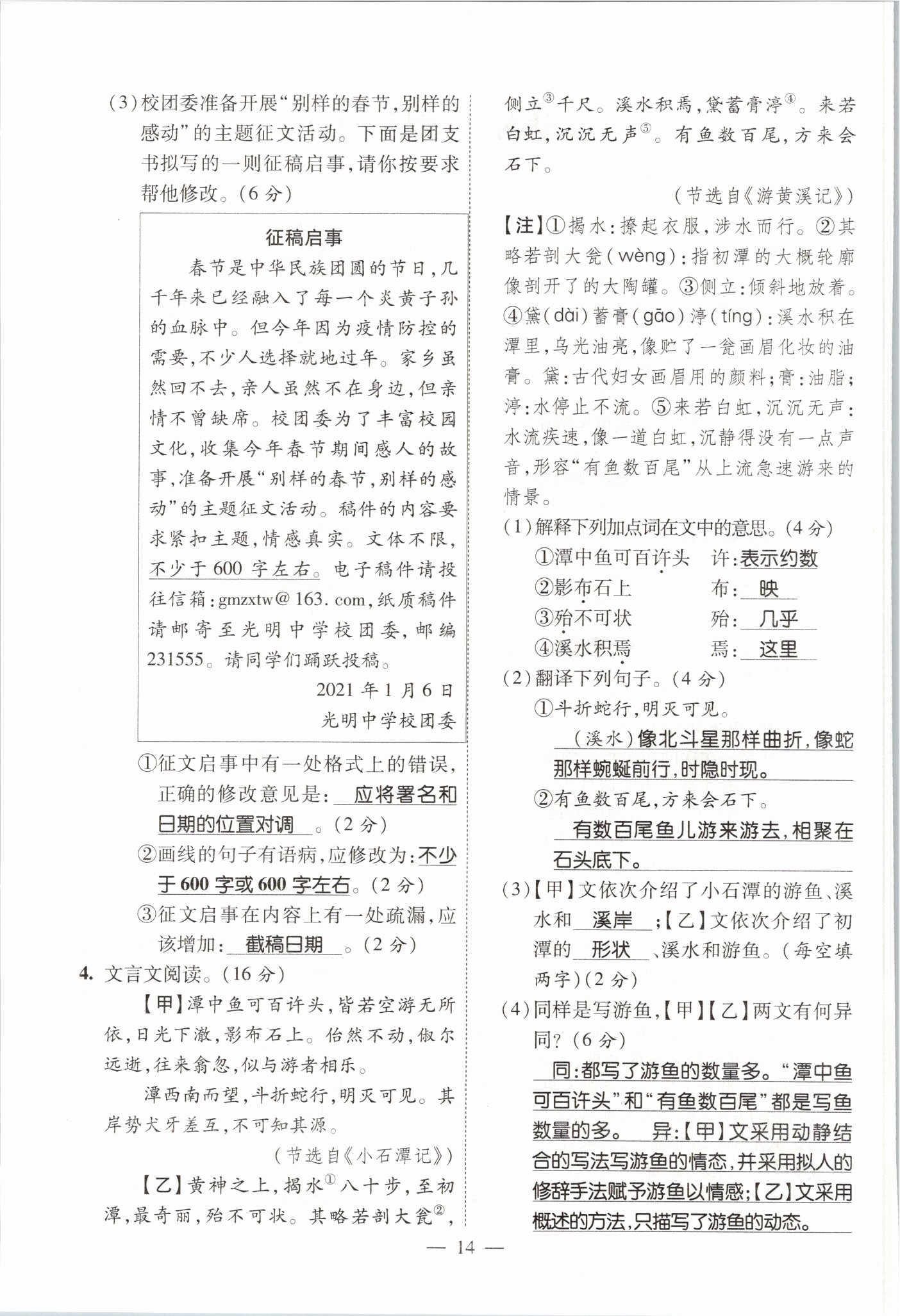 注:目前有些书本章节名称可能整理的还不是很完善,但都是按照顺序排列的,请同学们按照顺序仔细查找。练习册 2021年期末必刷题学练优计划八年级语文下册人教版 答案主要是用来给同学们做完题方便对答案用的,请勿直接抄袭。