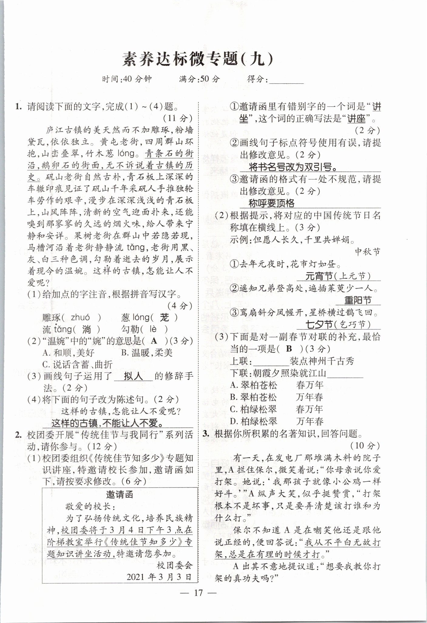 2021年期末必刷题学练优计划八年级语文下册人教版
