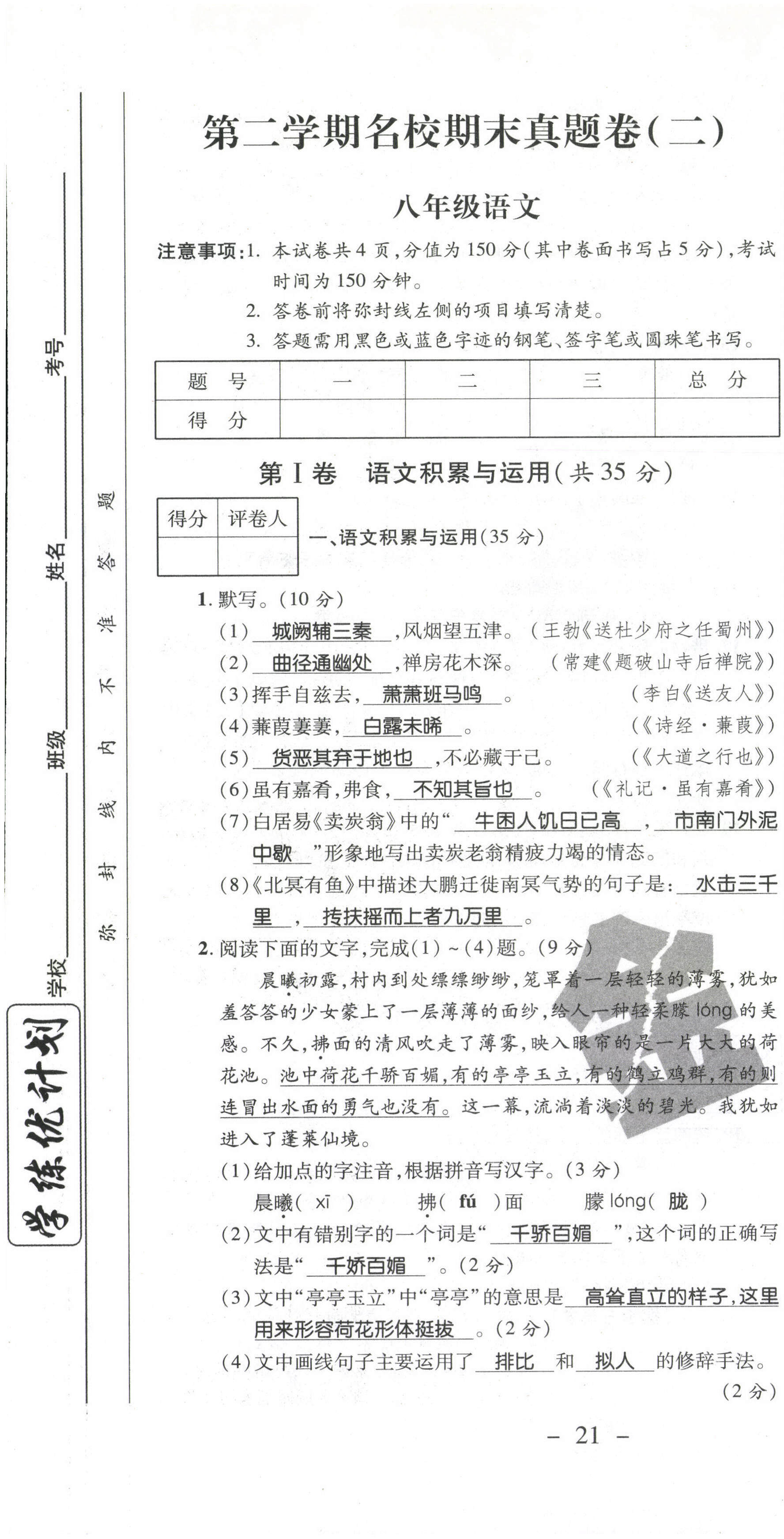 - 参考答案第21页
