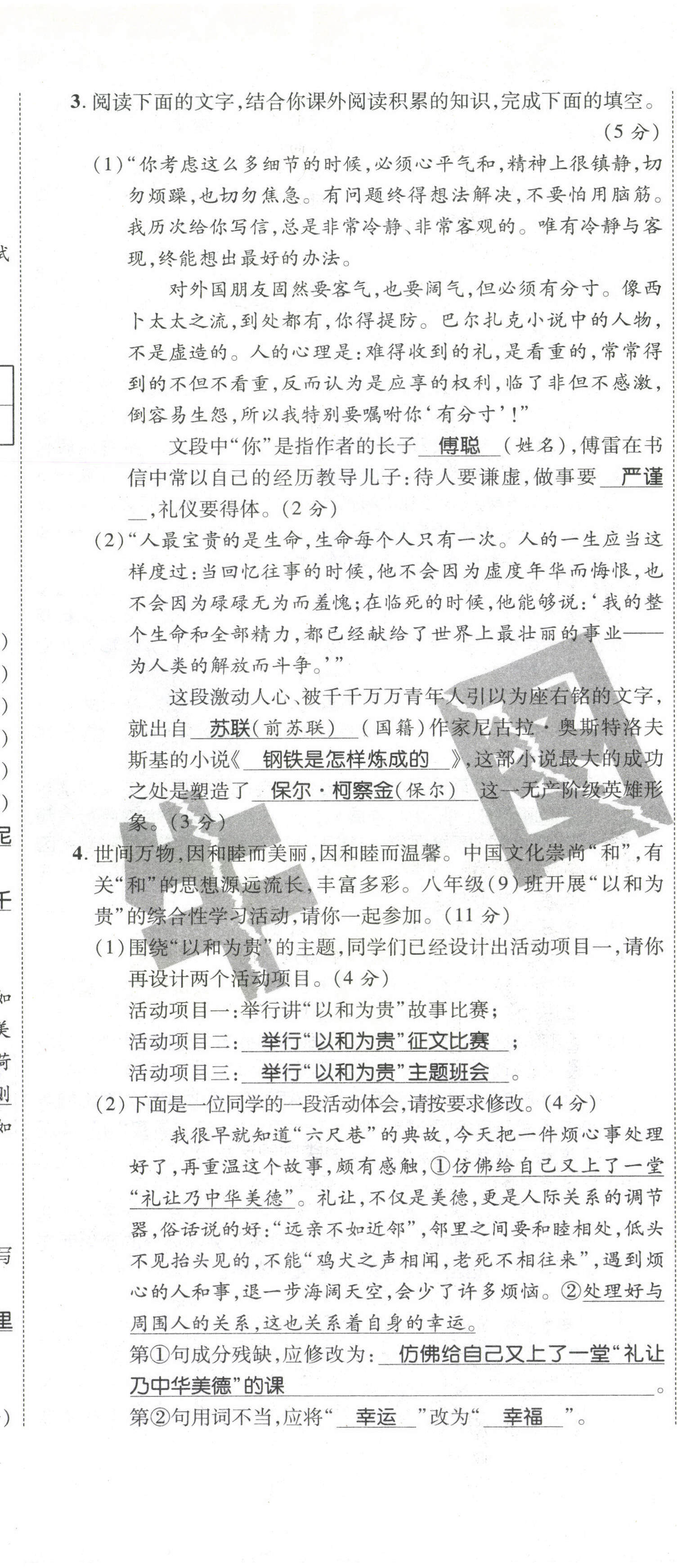 2021年期末必刷题学练优计划八年级语文下册人教版
