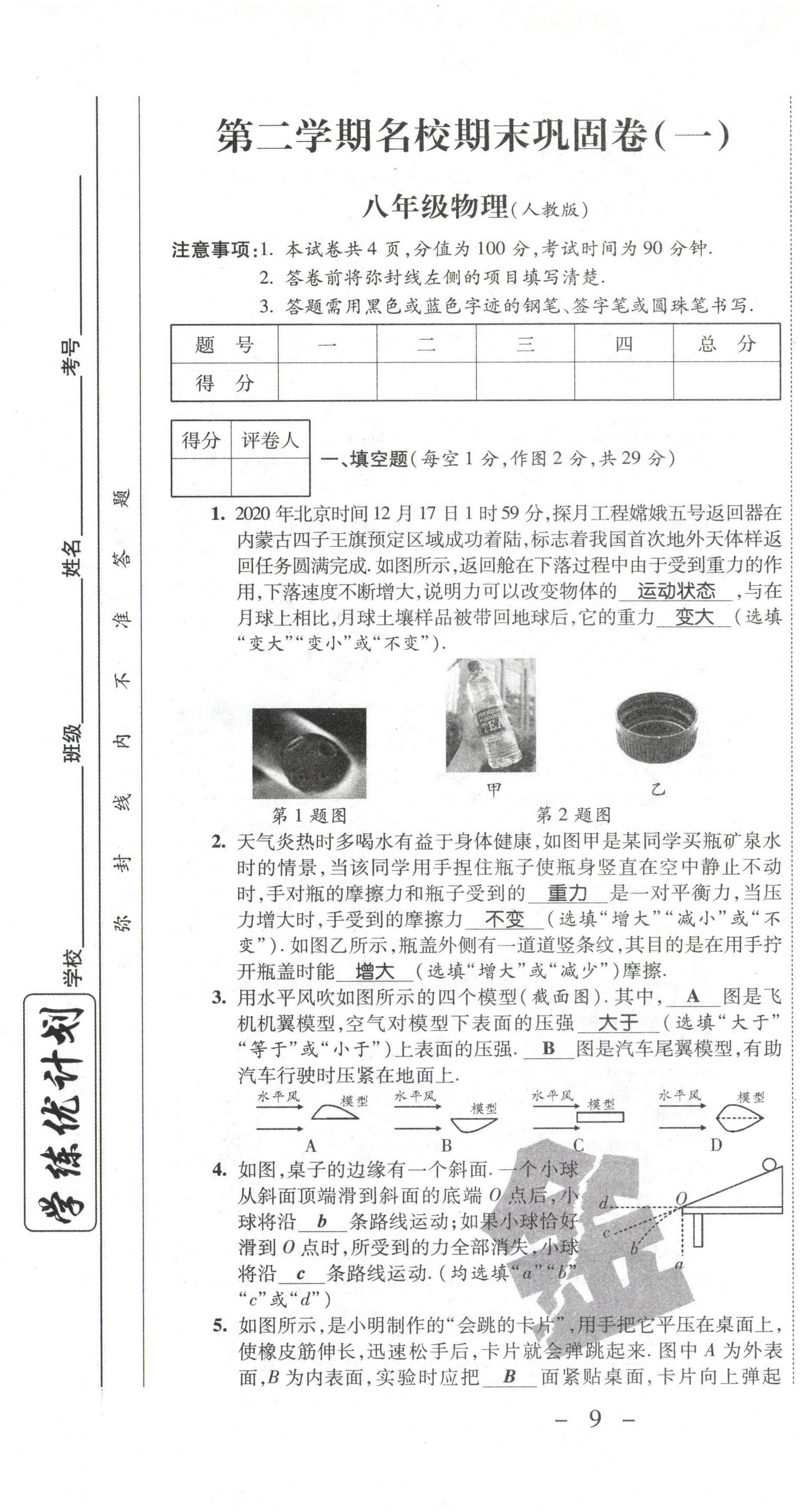 2021年期末必刷题学练优计划八年级物理下册人教版