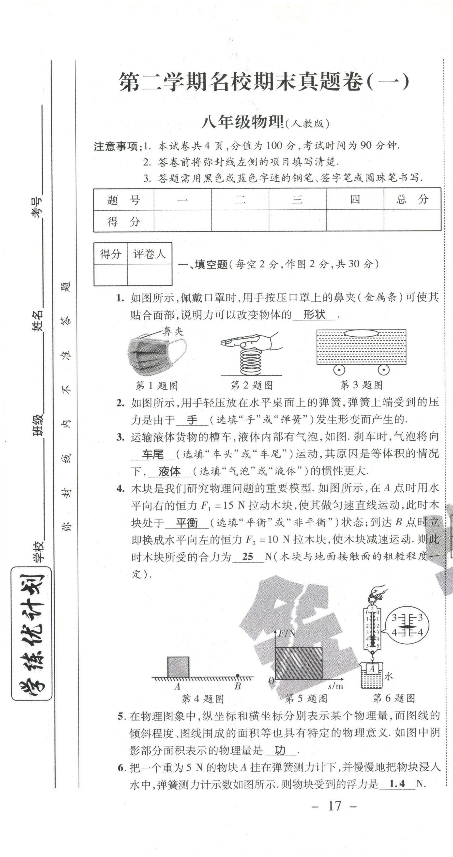 2021年期末必刷题学练优计划八年级物理下册人教版