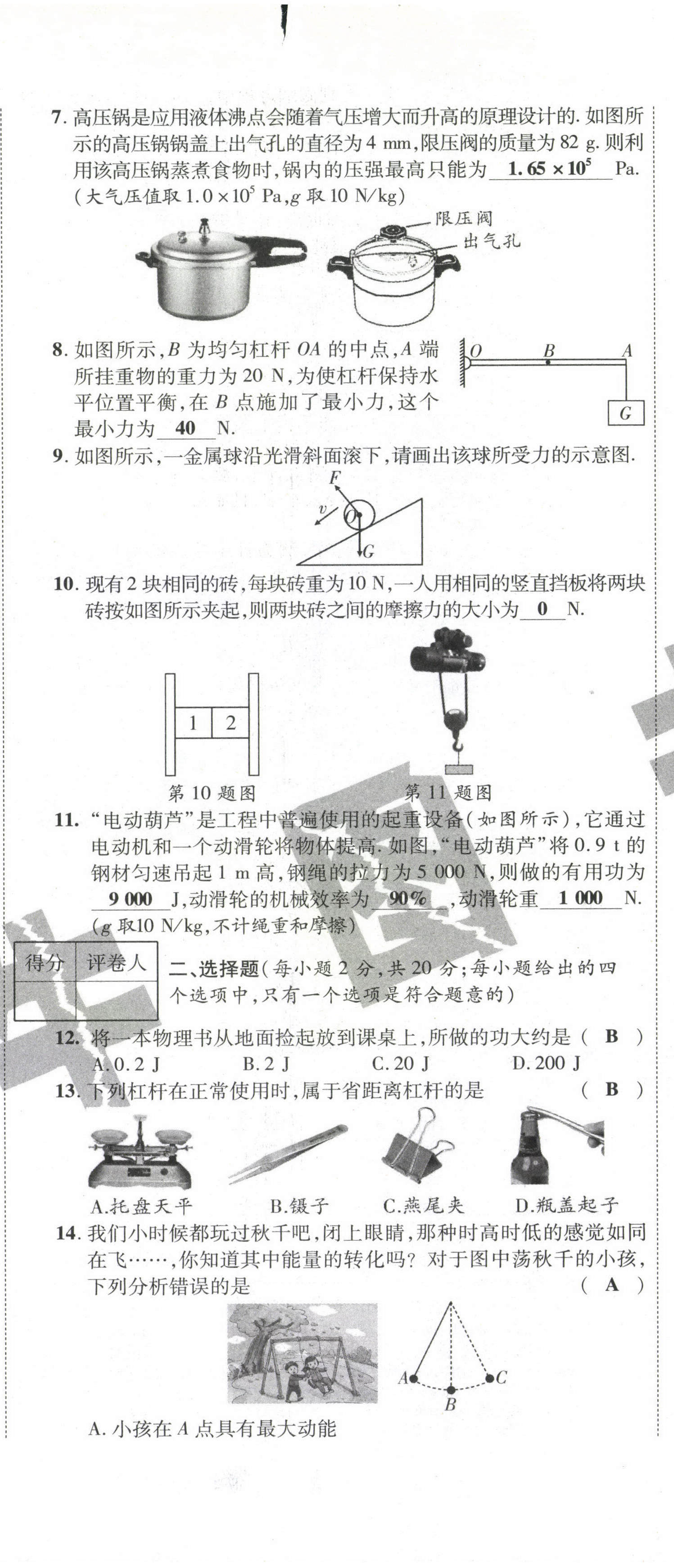 2021年期末必刷题学练优计划八年级物理下册人教版