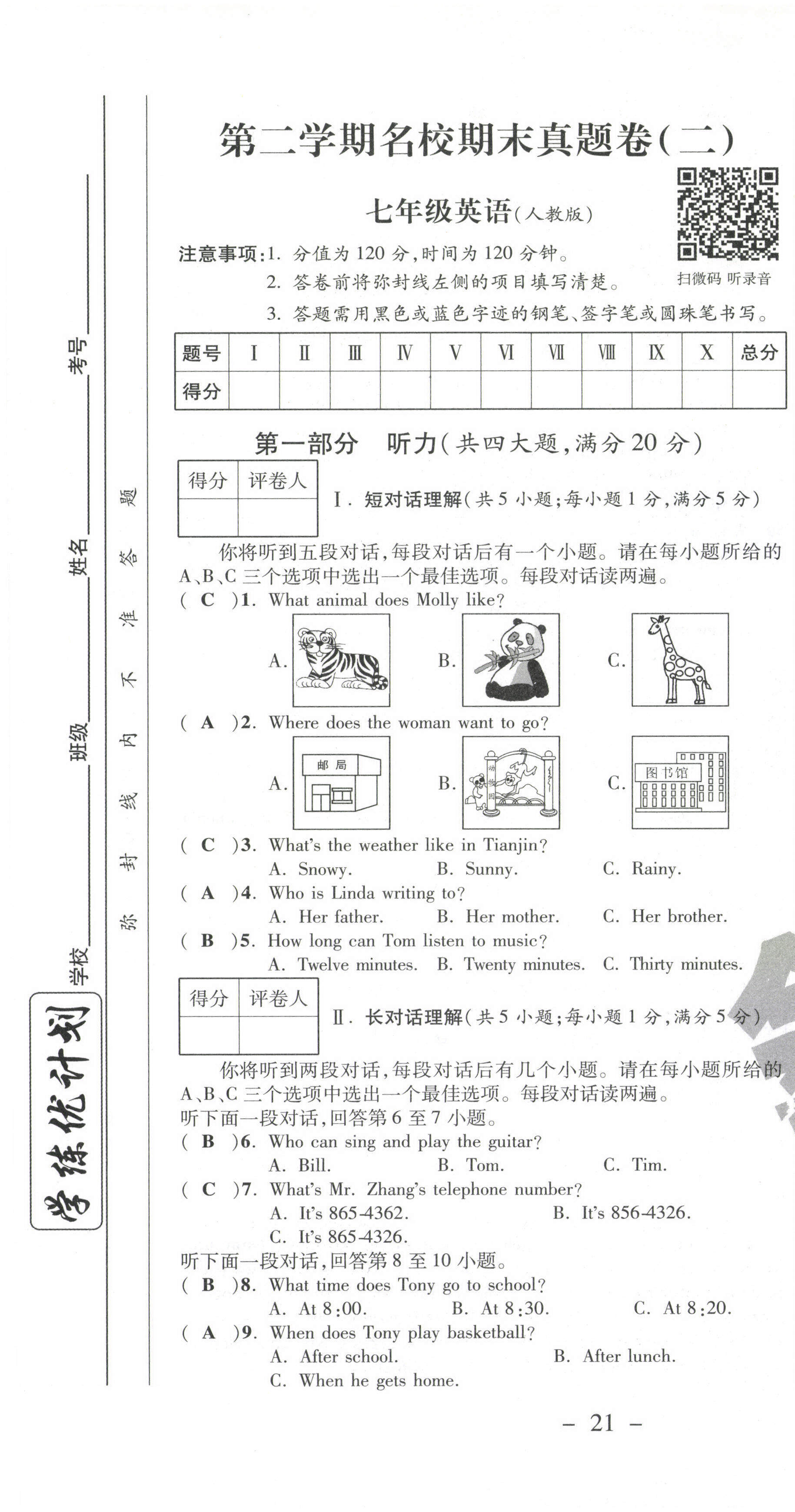 注:目前有些书本章节名称可能整理的还不是很完善,但都是按照顺序排列的,请同学们按照顺序仔细查找。练习册 2021年期末必刷题学练优计划七年级英语下册人教版 答案主要是用来给同学们做完题方便对答案用的,请勿直接抄袭。