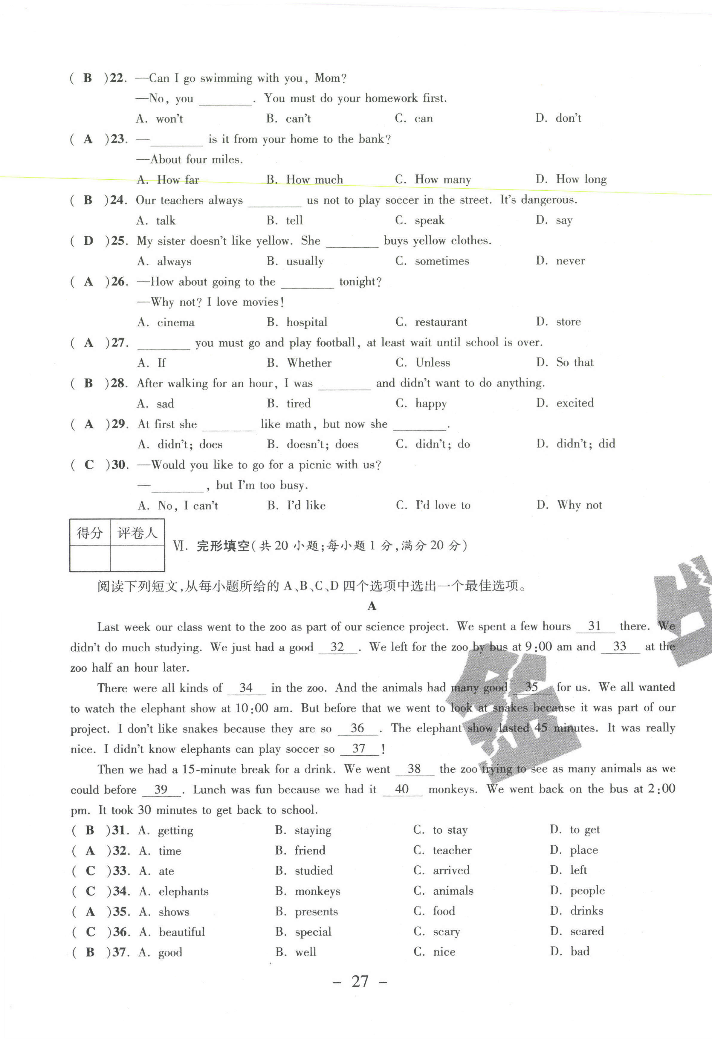 2021年期末必刷题学练优计划七年级英语下册人教版
