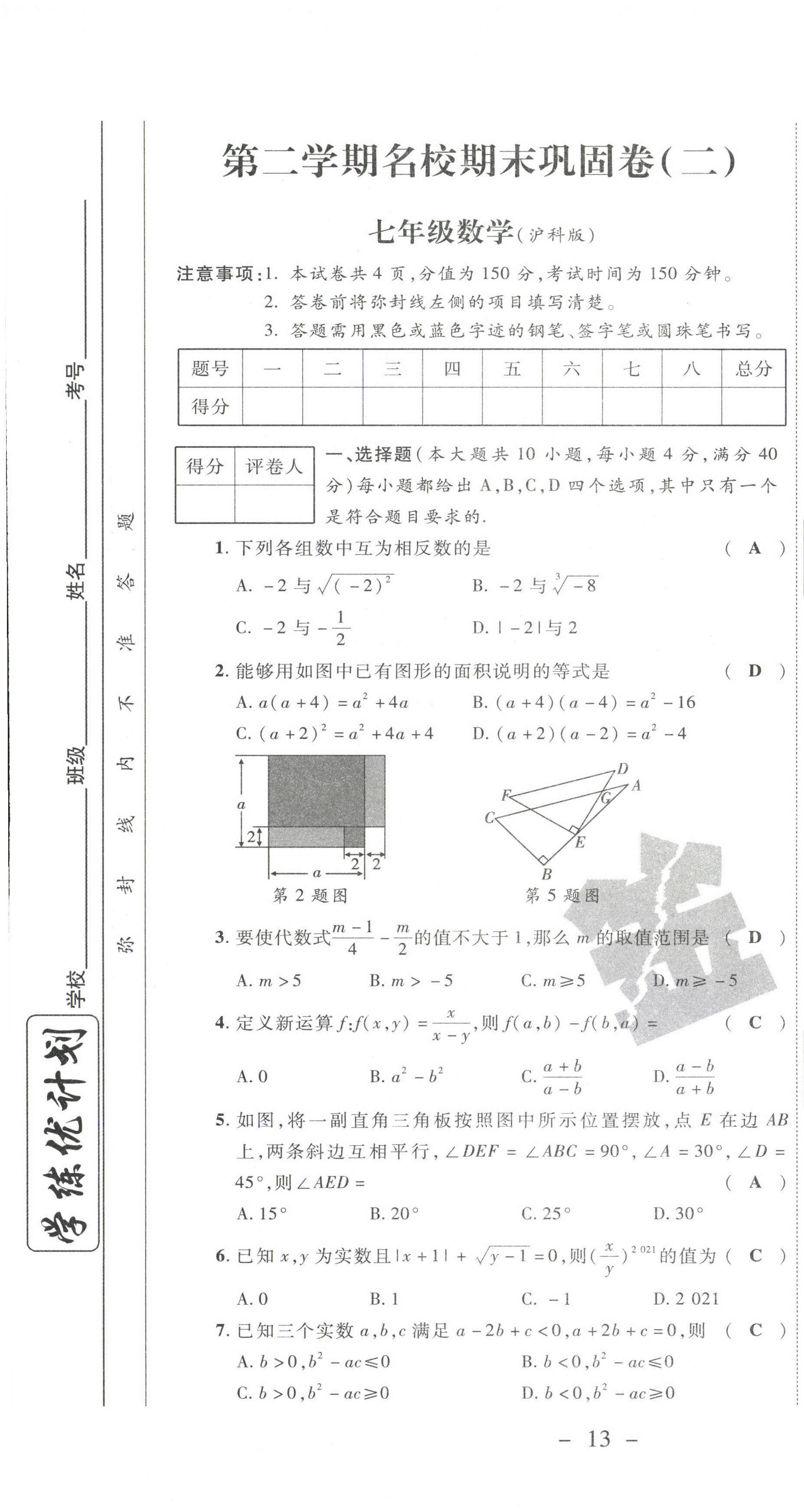 2021年期末必刷题学练优计划七年级数学下册沪科版