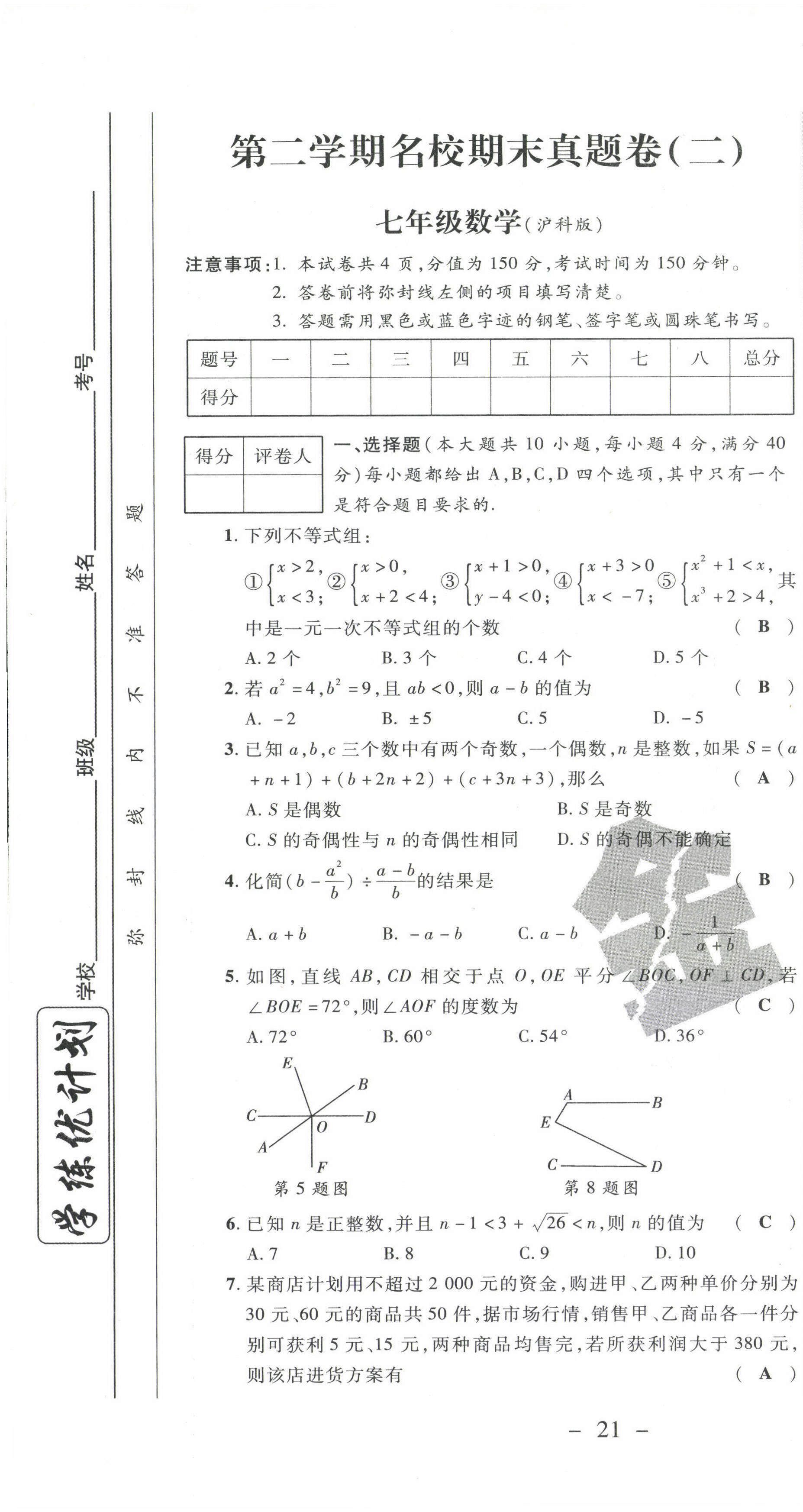 2021年期末必刷题学练优计划七年级数学下册沪科版