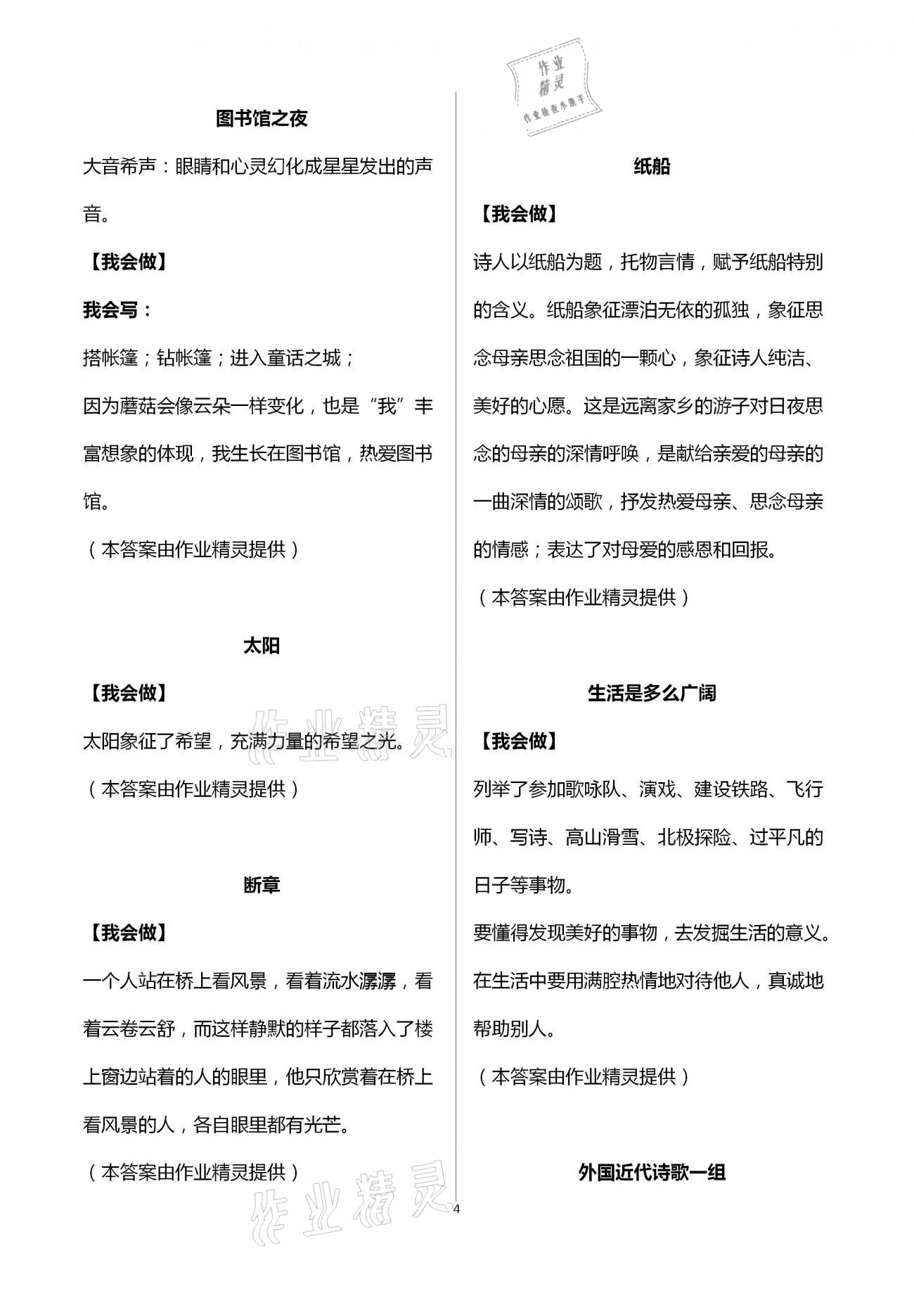 注:目前有些书本章节名称可能整理的还不是很完善,但都是按照顺序排列的,请同学们按照顺序仔细查找。练习册 2021年小学语文读本四年级下册人教版浙江文艺出版社 答案主要是用来给同学们做完题方便对答案用的,请勿直接抄袭。