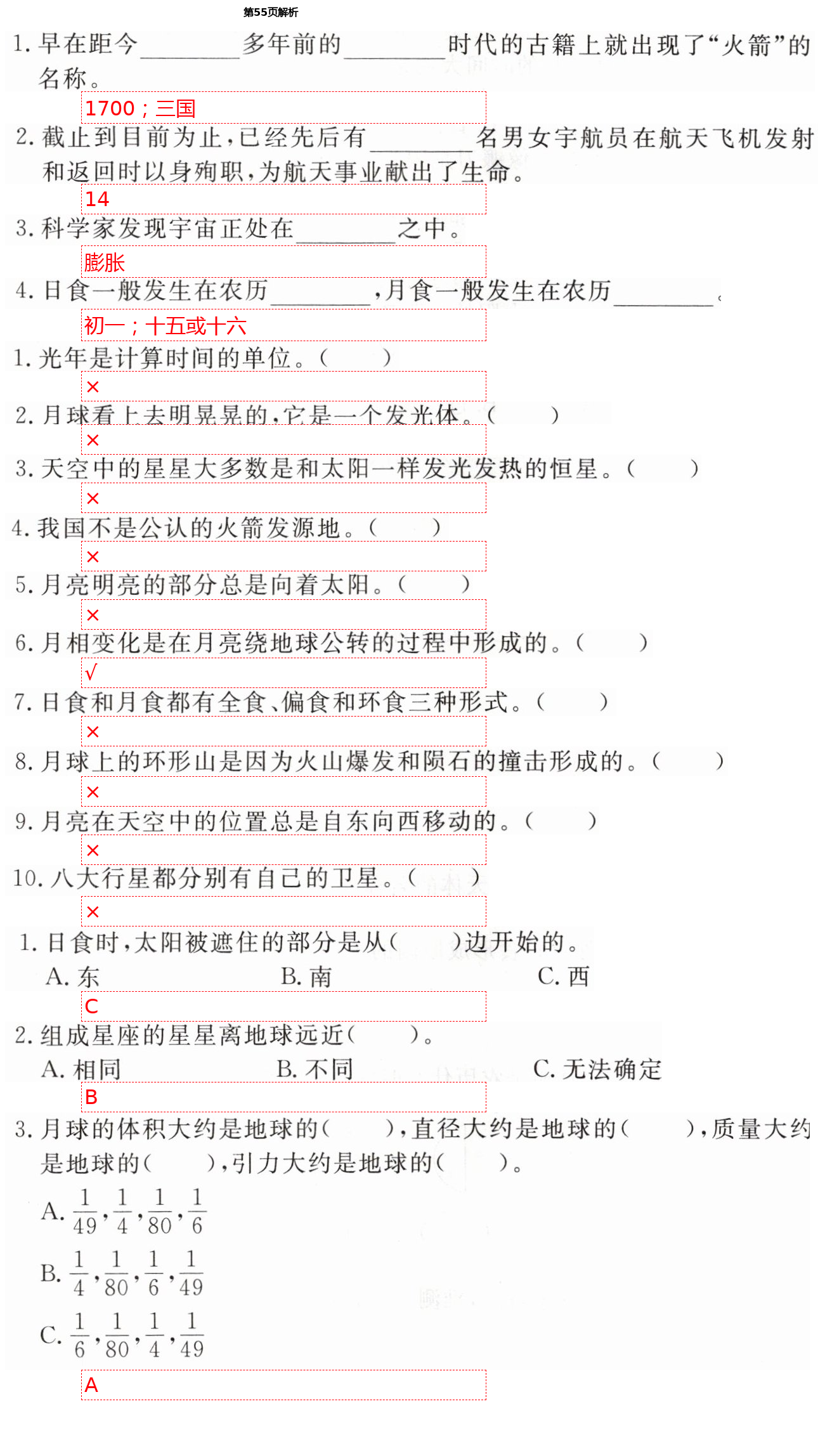 注:目前有些书本章节名称可能整理的还不是很完善,但都是按照顺序排列的,请同学们按照顺序仔细查找。练习册 2021年基本功训练六年级科学下册教科版A版 答案主要是用来给同学们做完题方便对答案用的,请勿直接抄袭。
