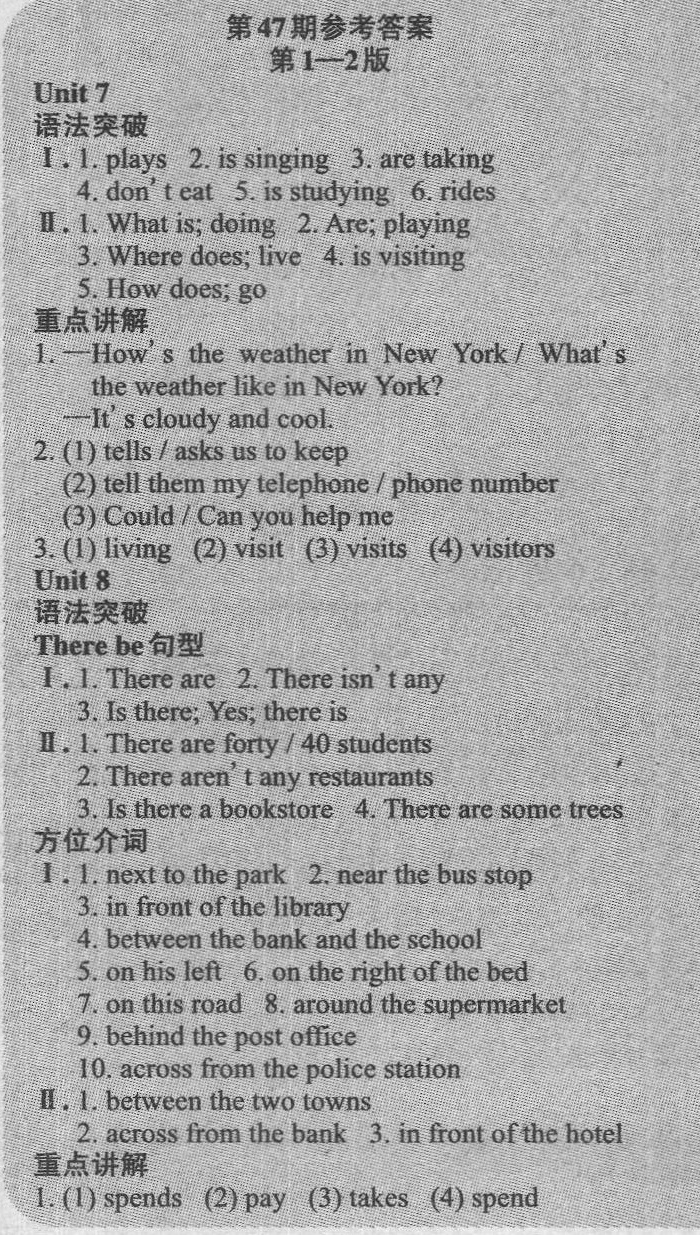 注:目前有些书本章节名称可能整理的还不是很完善,但都是按照顺序排列的,请同学们按照顺序仔细查找。练习册 2021年英语周报七年级人教版 答案主要是用来给同学们做完题方便对答案用的,请勿直接抄袭。