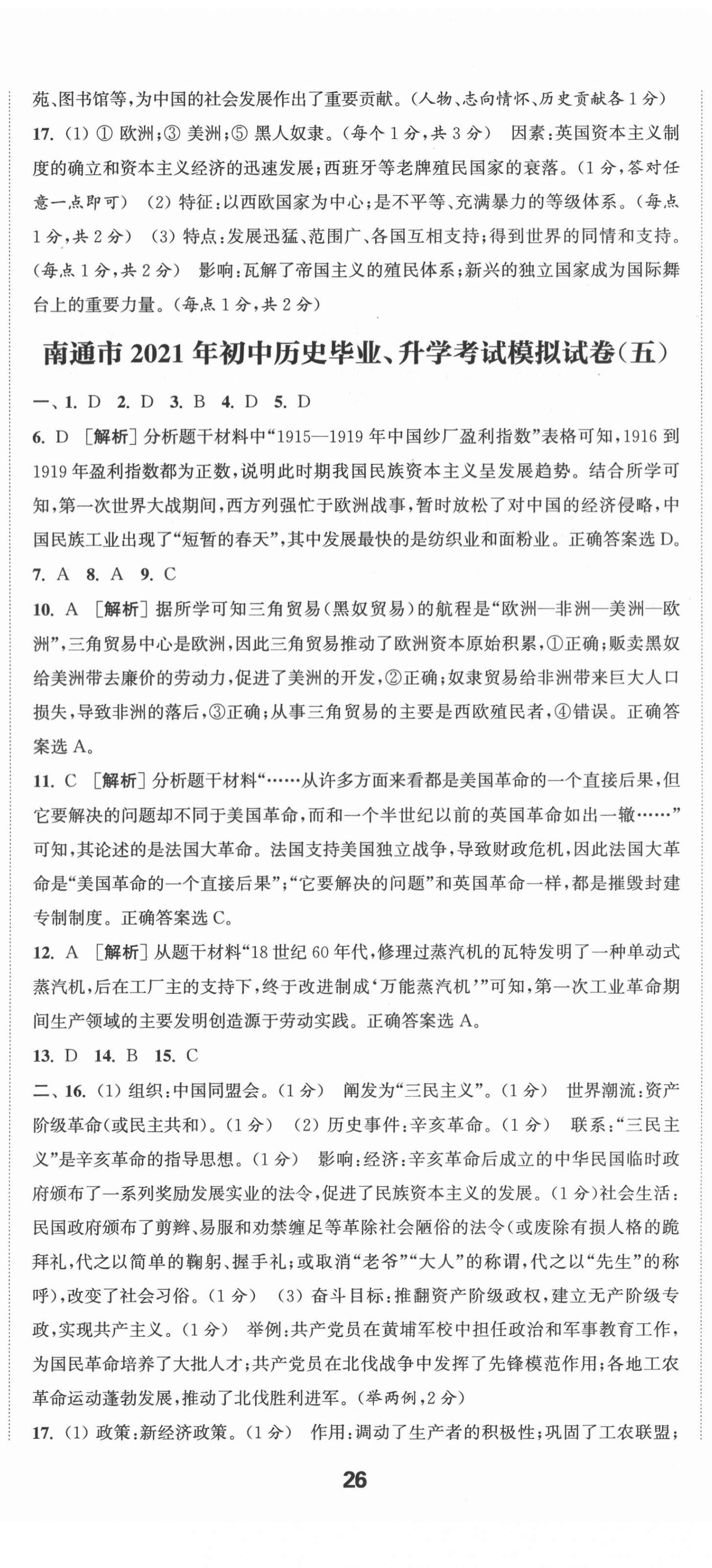 2021年通城学典决胜中考历史南通专版