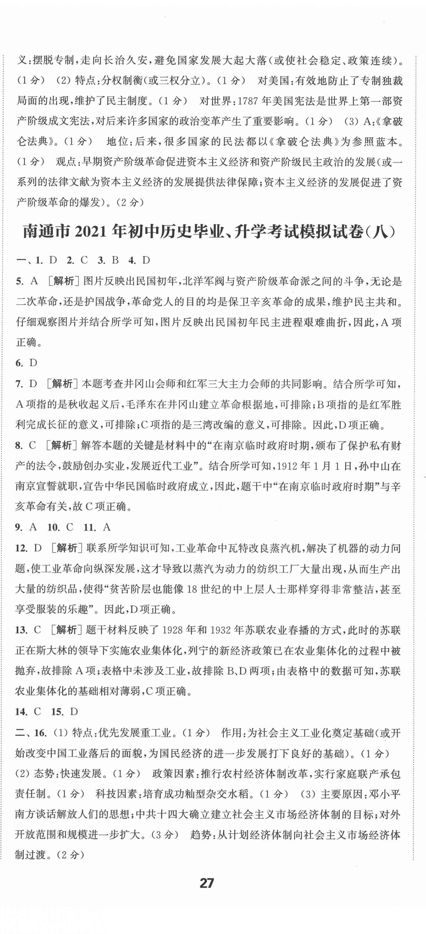 注:目前有些书本章节名称可能整理的还不是很完善,但都是按照顺序排列的,请同学们按照顺序仔细查找。练习册 2021年通城学典决胜中考历史南通专版 答案主要是用来给同学们做完题方便对答案用的,请勿直接抄袭。