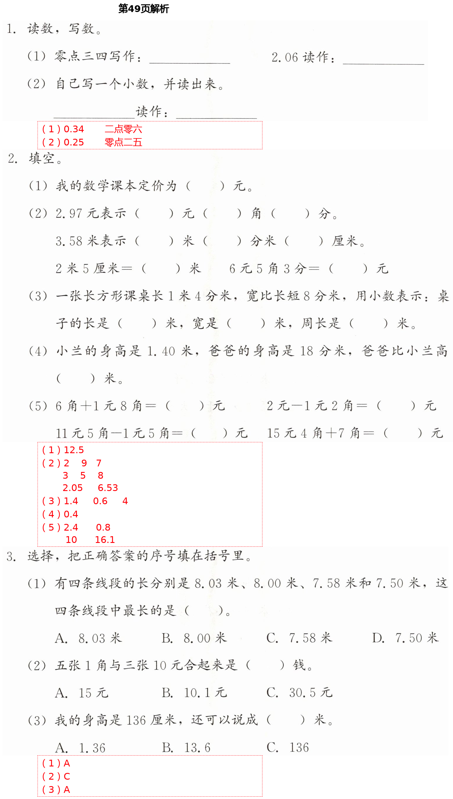 注:目前有些书本章节名称可能整理的还不是很完善,但都是按照顺序排列的,请同学们按照顺序仔细查找。练习册 2021年同步练习册三年级数学下册冀教版广西专版河北教育出版社 答案主要是用来给同学们做完题方便对答案用的,请勿直接抄袭。