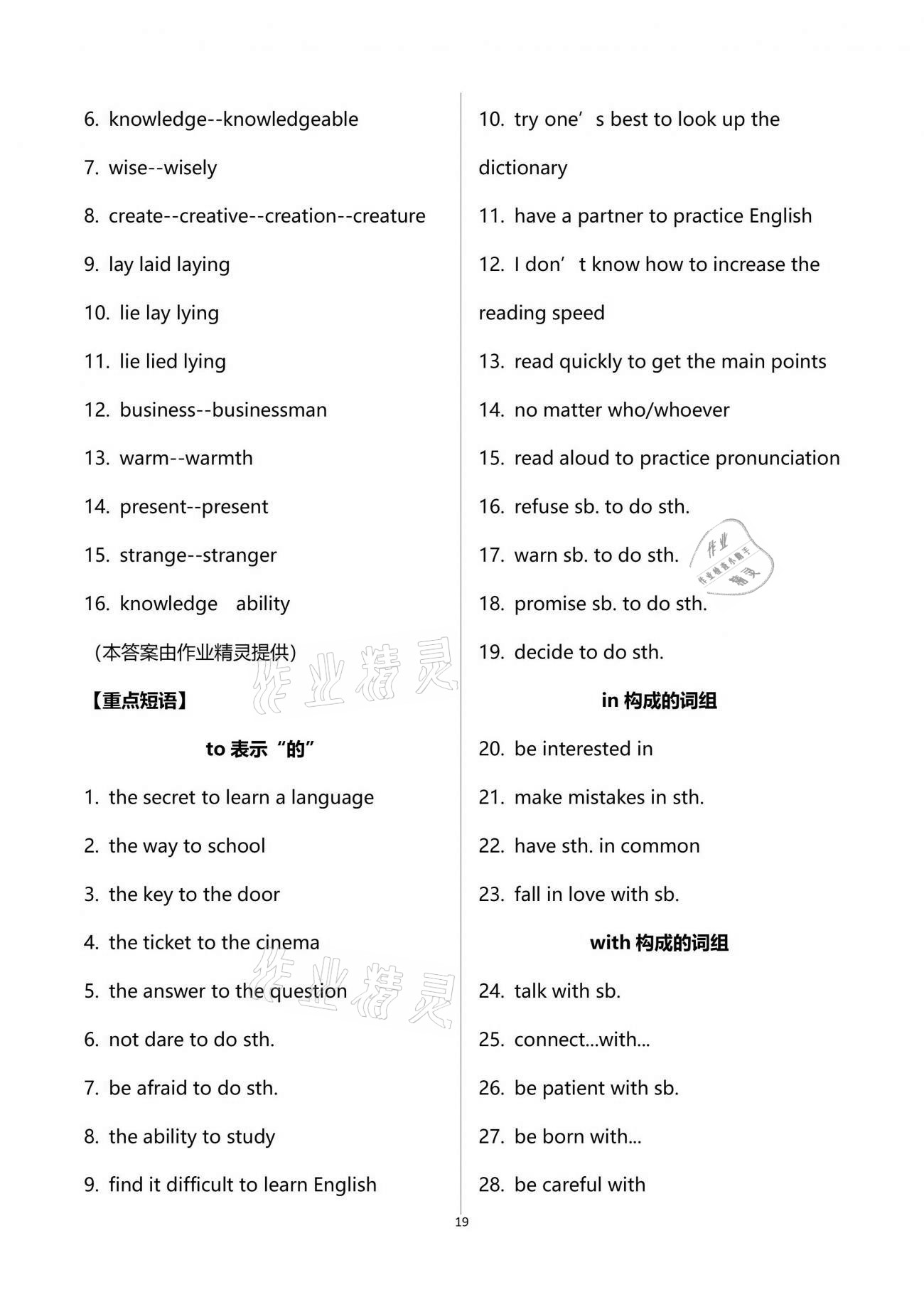 注:目前有些书本章节名称可能整理的还不是很完善,但都是按照顺序排列的,请同学们按照顺序仔细查找。练习册 2021年本土教辅名校学案初中生辅导英语 答案主要是用来给同学们做完题方便对答案用的,请勿直接抄袭。