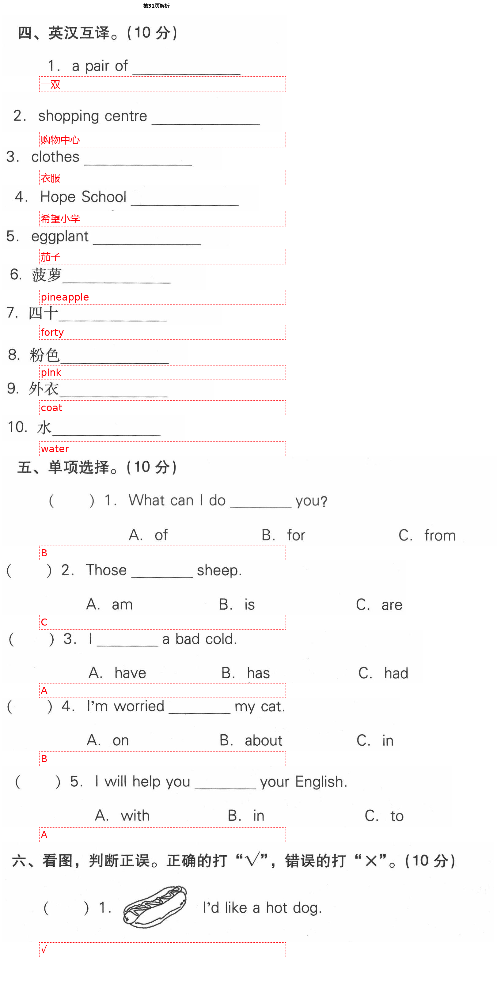 注:目前有些书本章节名称可能整理的还不是很完善,但都是按照顺序排列的,请同学们按照顺序仔细查找。练习册 2021年课时作业本加提优试卷六年级英语下册人教精通版 答案主要是用来给同学们做完题方便对答案用的,请勿直接抄袭。