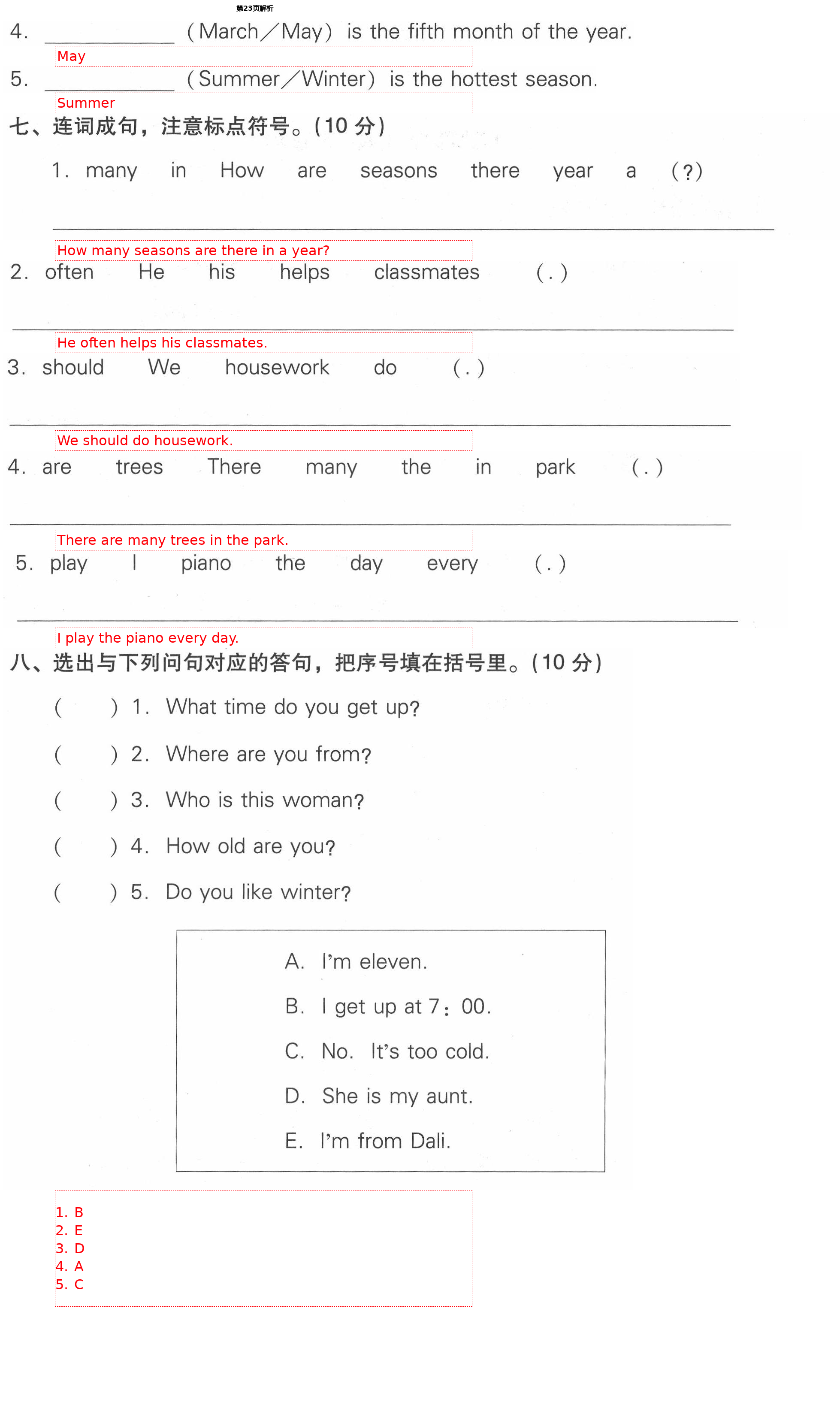 注:目前有些书本章节名称可能整理的还不是很完善,但都是按照顺序排列的,请同学们按照顺序仔细查找。练习册 2021年课时作业本加提优试卷六年级英语下册人教精通版 答案主要是用来给同学们做完题方便对答案用的,请勿直接抄袭。