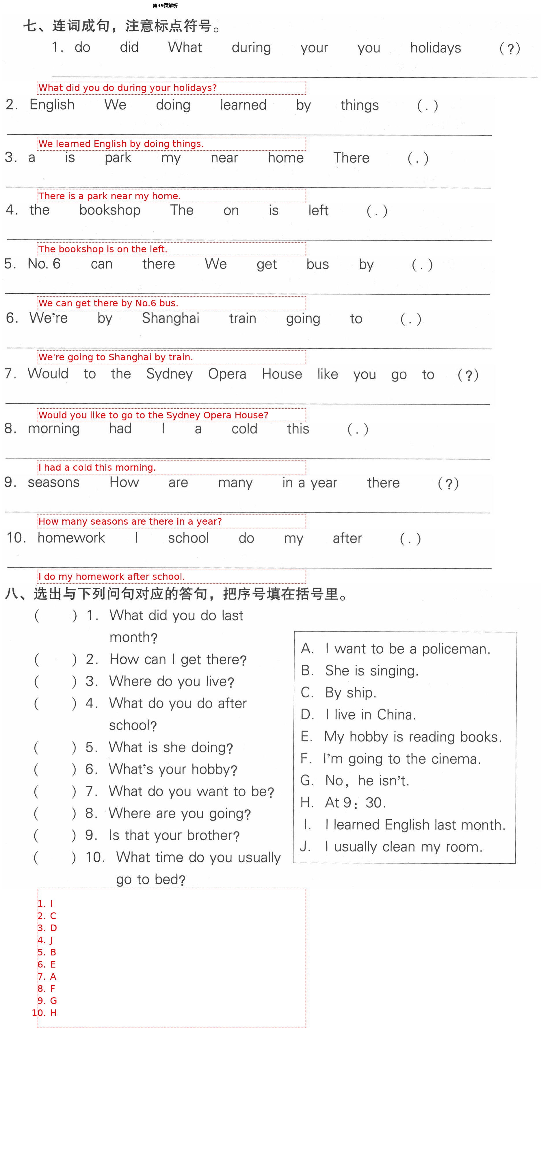 注:目前有些书本章节名称可能整理的还不是很完善,但都是按照顺序排列的,请同学们按照顺序仔细查找。练习册 2021年课时作业本加提优试卷六年级英语下册人教精通版 答案主要是用来给同学们做完题方便对答案用的,请勿直接抄袭。