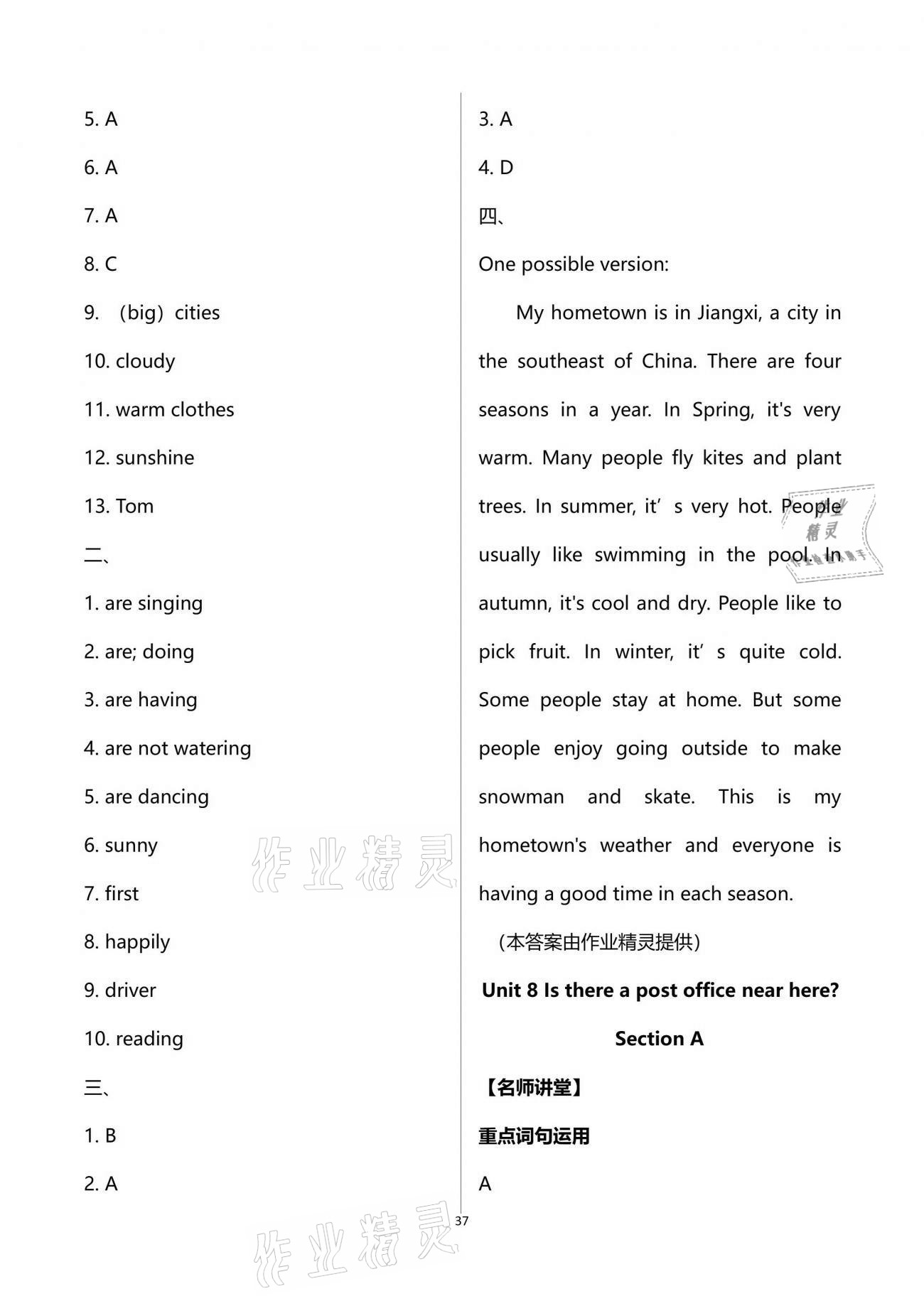 注:目前有些书本章节名称可能整理的还不是很完善,但都是按照顺序排列的,请同学们按照顺序仔细查找。练习册 2021年一课一练创新练习七年级英语下册人教版A版 答案主要是用来给同学们做完题方便对答案用的,请勿直接抄袭。