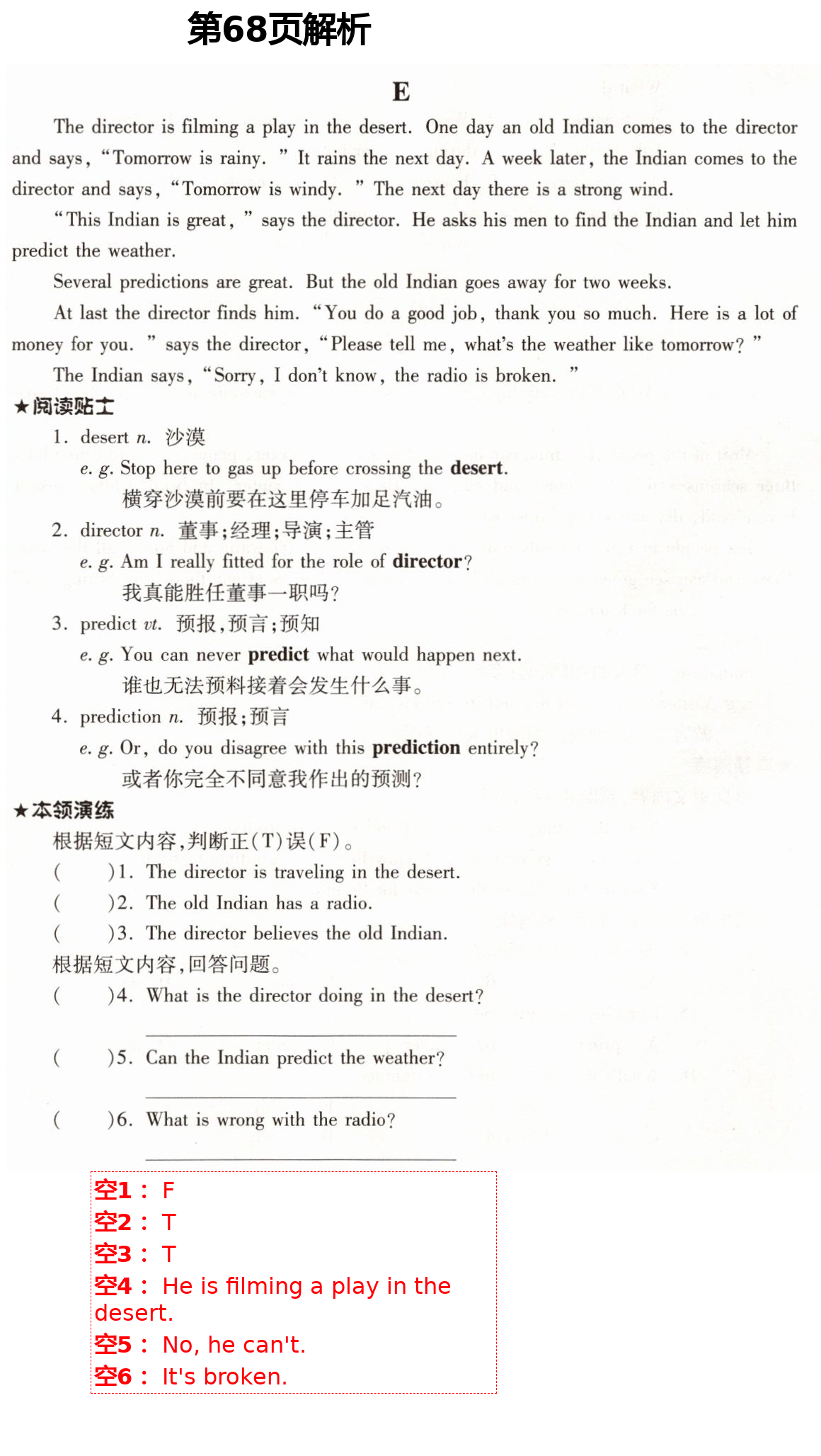 注:目前有些书本章节名称可能整理的还不是很完善,但都是按照顺序排列的,请同学们按照顺序仔细查找。练习册 2021年英语阅读训练七年级下册B版天津科学技术出版社 答案主要是用来给同学们做完题方便对答案用的,请勿直接抄袭。