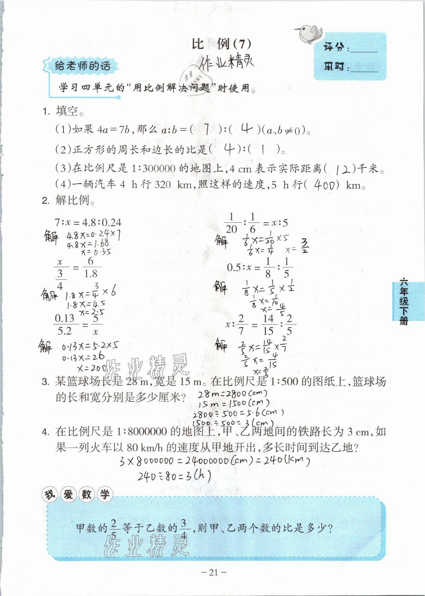 注:目前有些书本章节名称可能整理的还不是很完善,但都是按照顺序排列的,请同学们按照顺序仔细查找。练习册 2021年小学数学口算练习册六年级下册人教版人民教育出版社 答案主要是用来给同学们做完题方便对答案用的,请勿直接抄袭。
