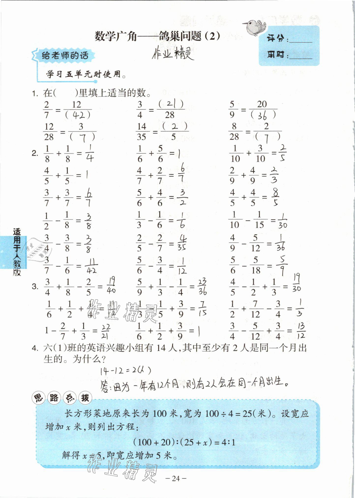 注:目前有些书本章节名称可能整理的还不是很完善,但都是按照顺序排列的,请同学们按照顺序仔细查找。练习册 2021年小学数学口算练习册六年级下册人教版人民教育出版社 答案主要是用来给同学们做完题方便对答案用的,请勿直接抄袭。