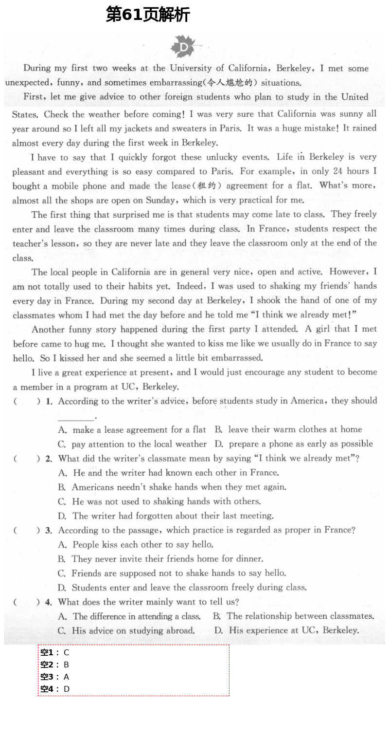 注:目前有些书本章节名称可能整理的还不是很完善,但都是按照顺序排列的,请同学们按照顺序仔细查找。练习册 2021年听读时间初中英语分级听读八年级下册提升版译林版 答案主要是用来给同学们做完题方便对答案用的,请勿直接抄袭。