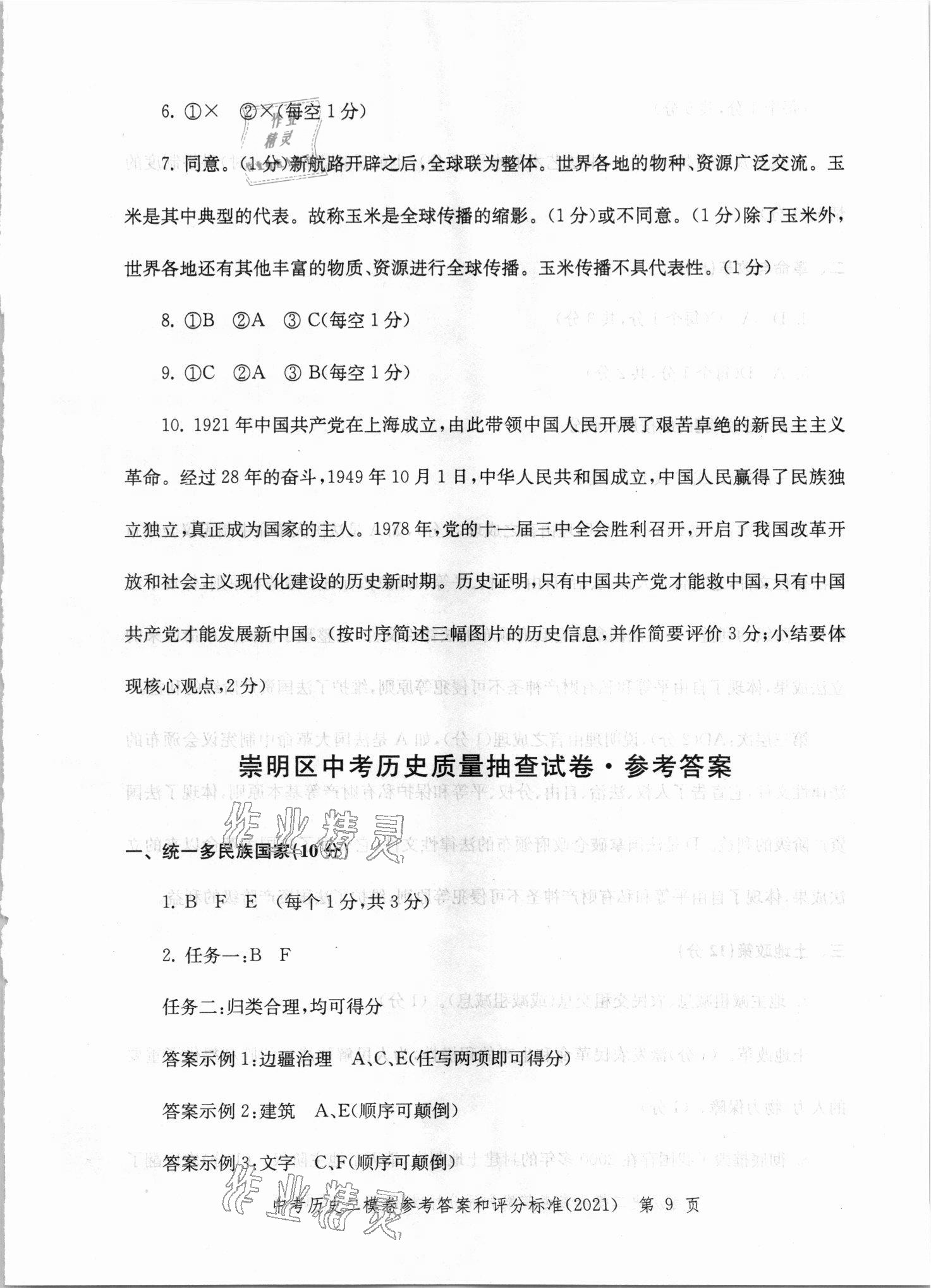 2021年走向成功上海市各区中考考前质量抽查试卷精编历史