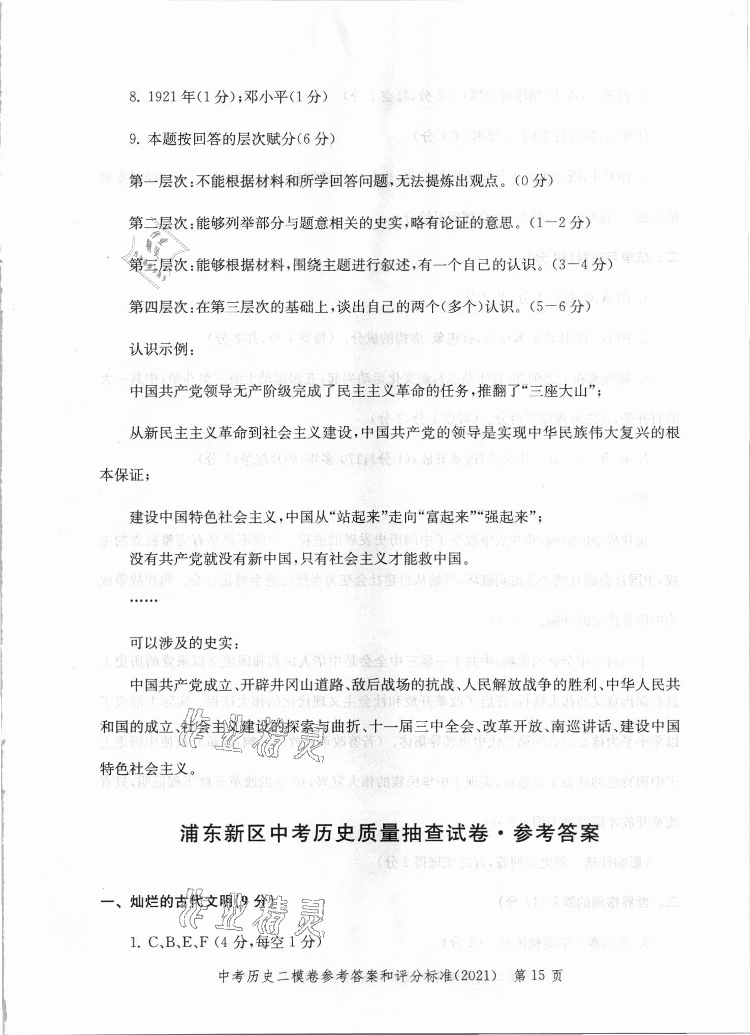 2021年走向成功上海市各区中考考前质量抽查试卷精编历史