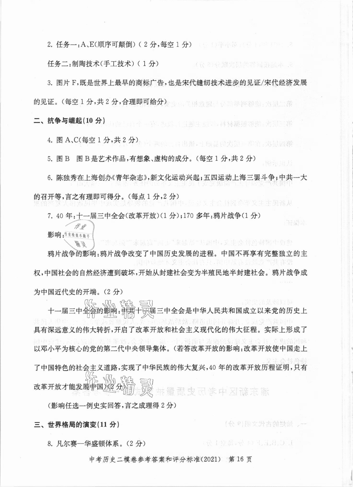 2021年走向成功上海市各区中考考前质量抽查试卷精编历史