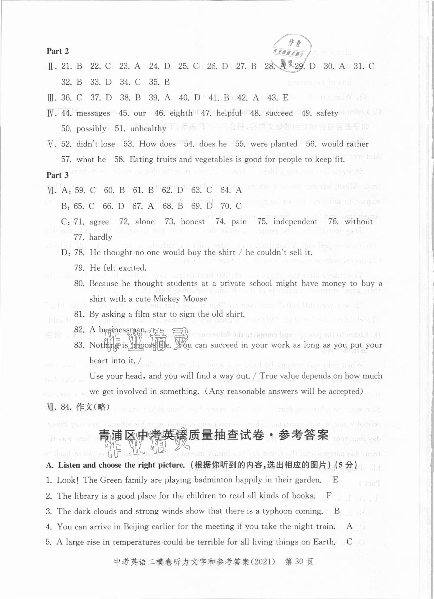 《2021年走向成功上海市各区中考考前质量抽查试卷精编英语》