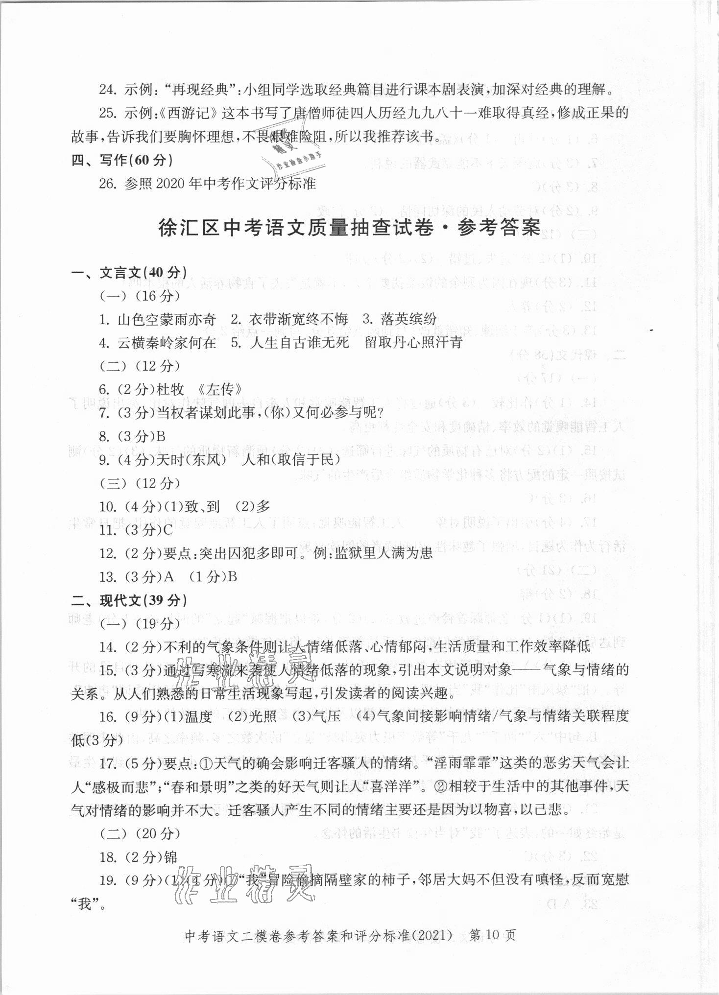 2021年走向成功上海市各区中考考前质量抽查试卷精编语文